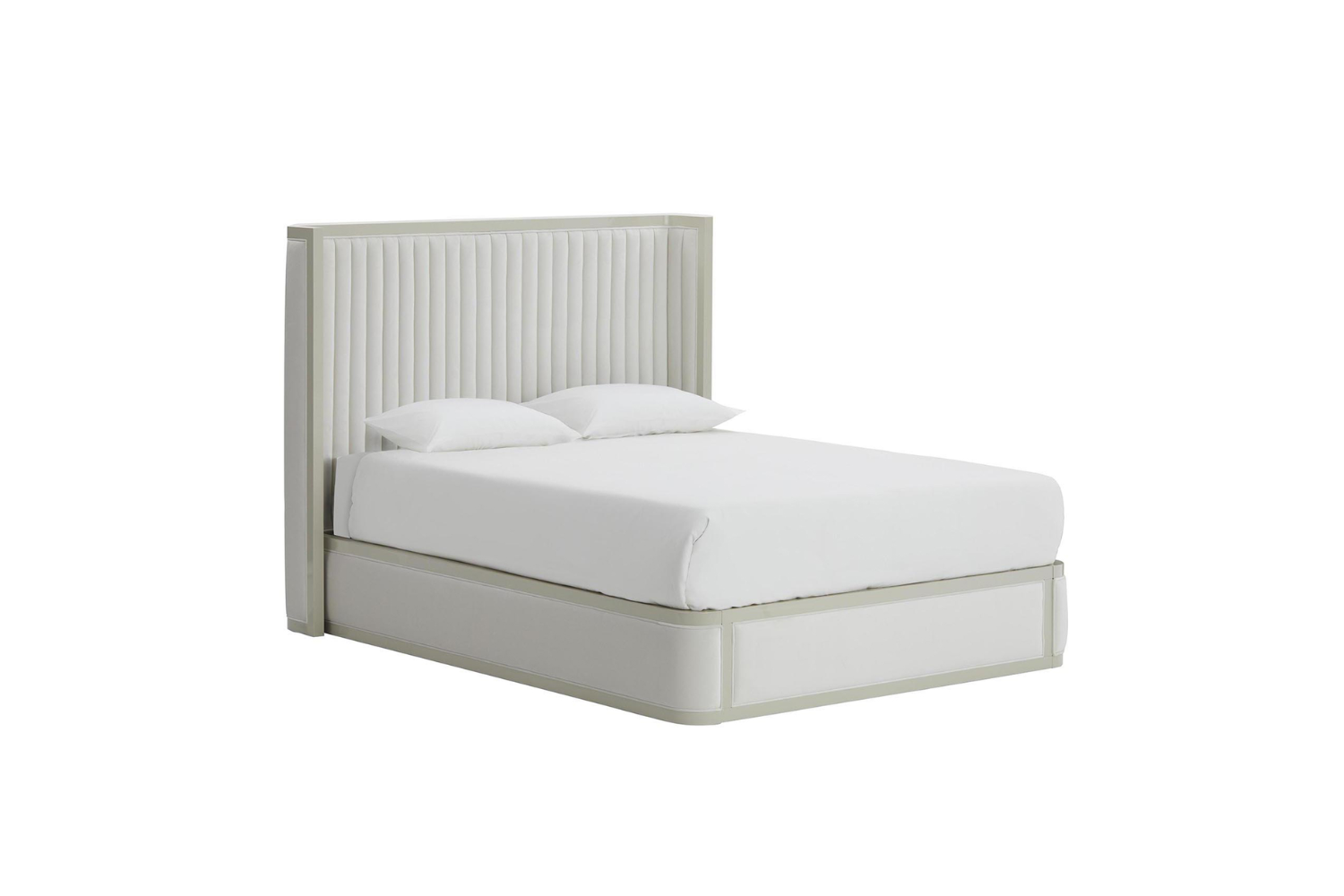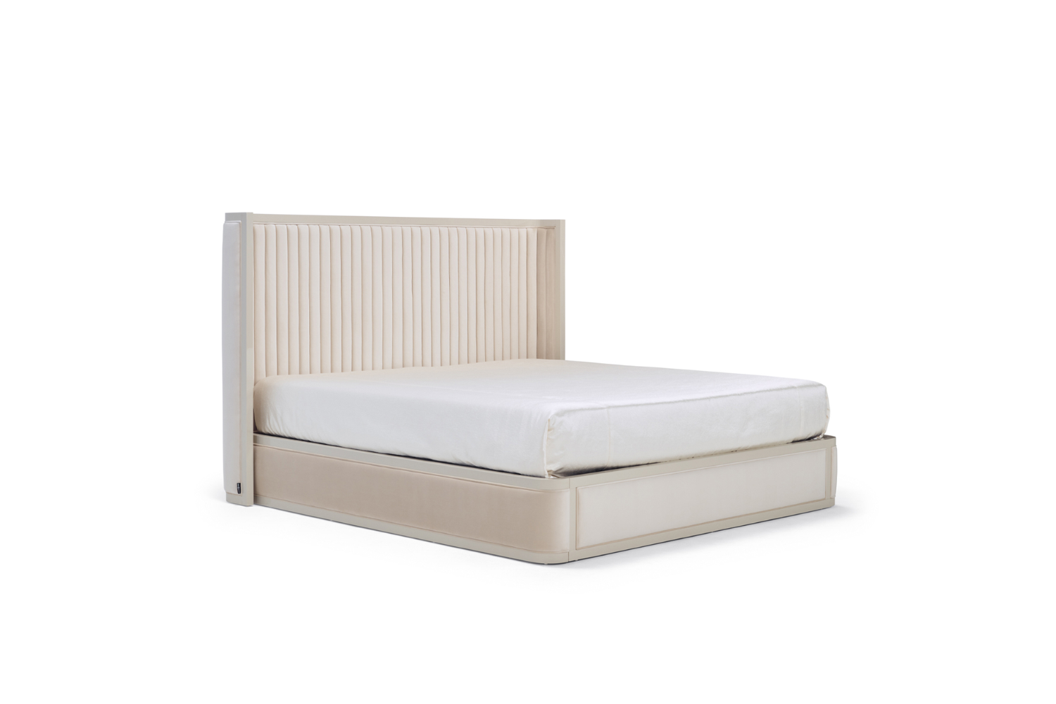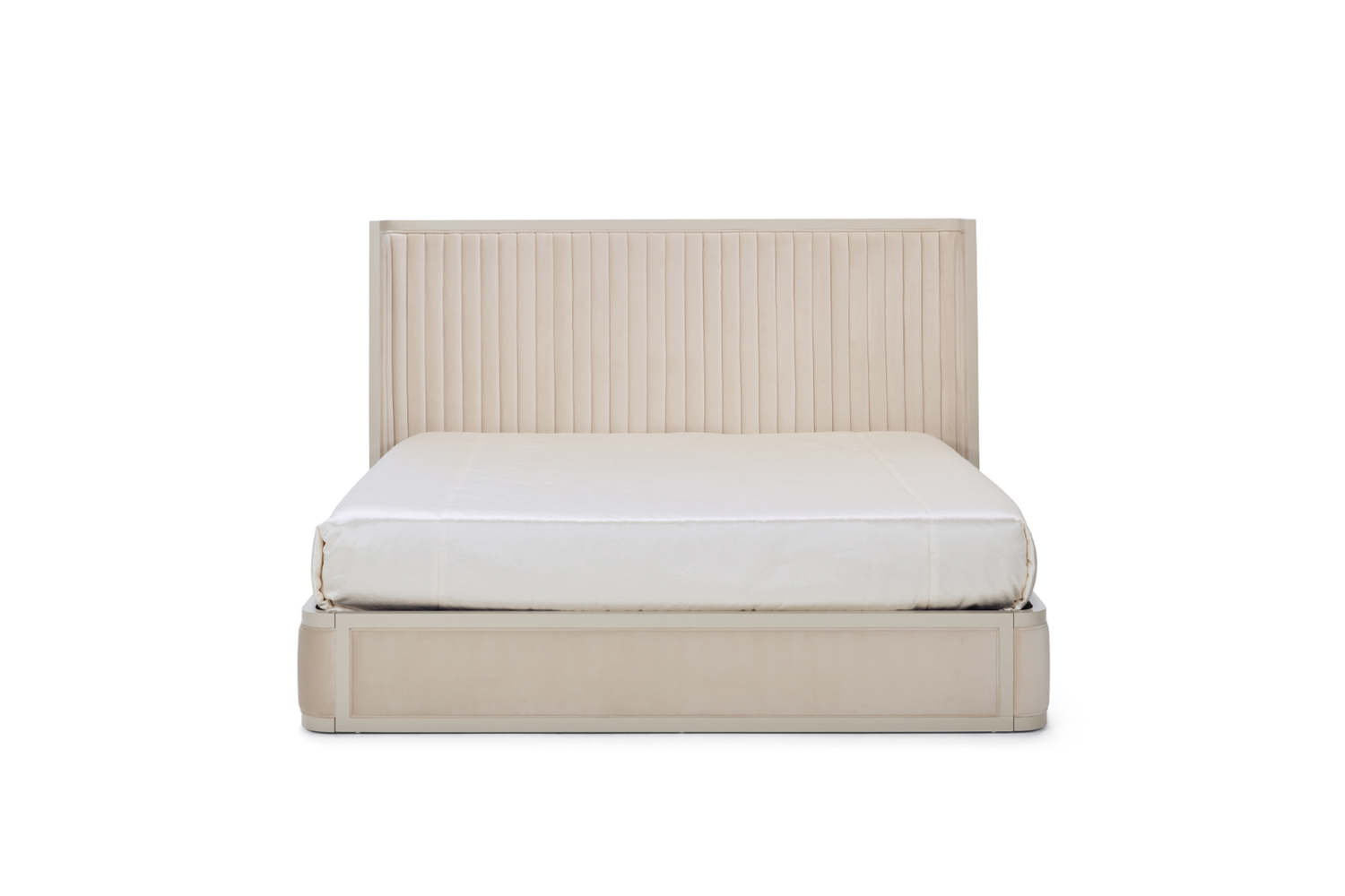 The Ageta Bed combines a high, padded headboard with a sleek lacquered frame, accentuated by delicate quilting for a sophisticated touch. With its versatile elegance, the Ageta is designed to enhance any bedroom décor. Available in three sizes, it offers full customization options for the frame color and upholstery, including choices in leather, fabric, leatherette, or customer-provided material. Additional dimensions are available upon request, allowing the Ageta Bed to be tailored to fit any space beautifully.