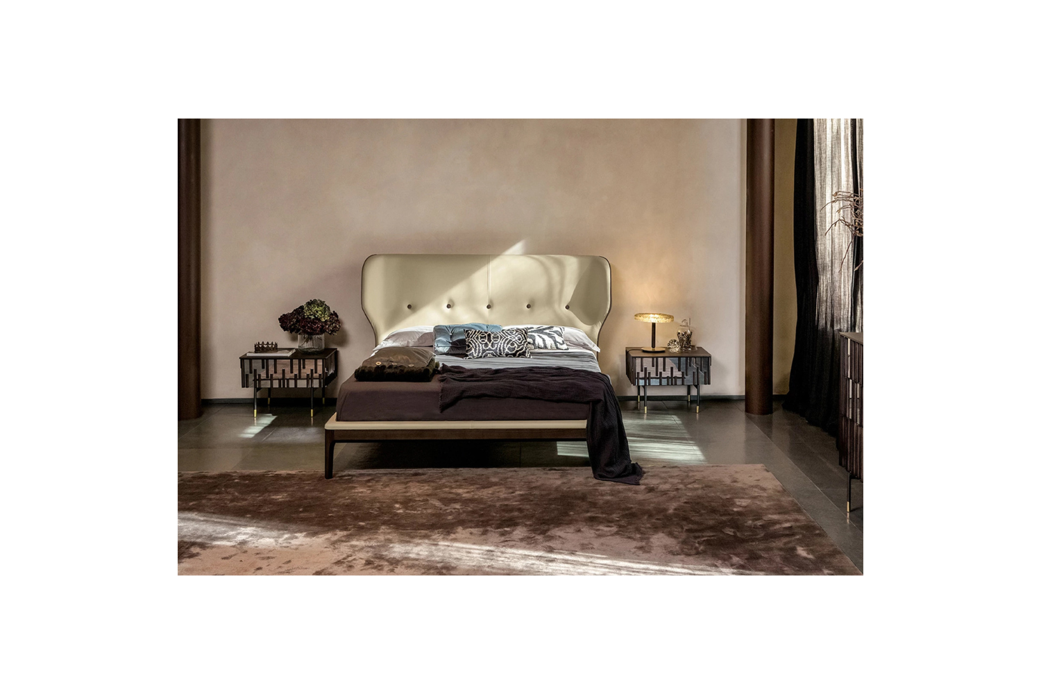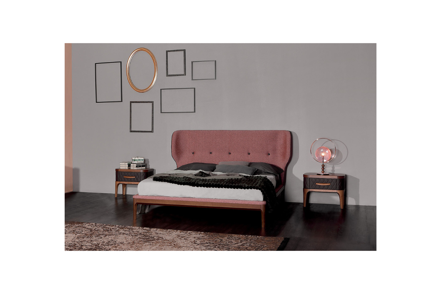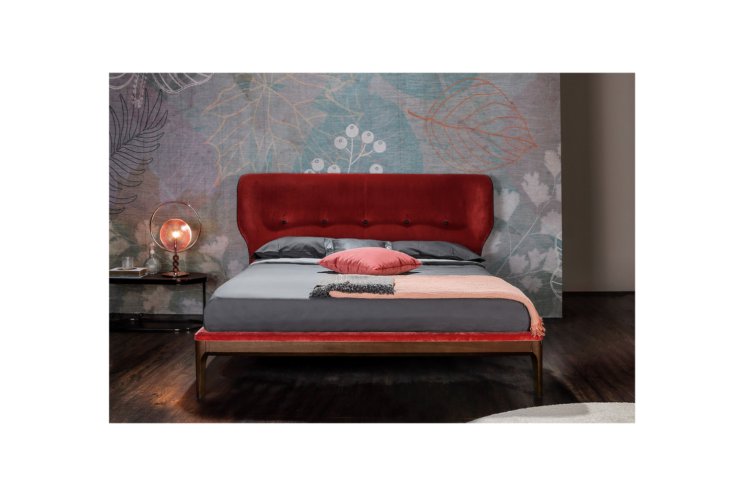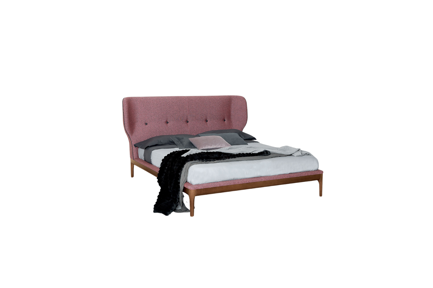 Drift into a restful sleep with the Amber bed, where sophistication meets comfort. The refined, tufted headboard adds a touch of luxury, making a bold statement in any modern bedroom. Wrapped in sumptuously soft upholstery and supported by a sturdy wooden base, this bed is built for lasting durability. The striking contrast between the plush fabric and solid wood creates a stylish and contemporary aesthetic, perfect for elevating your space.
