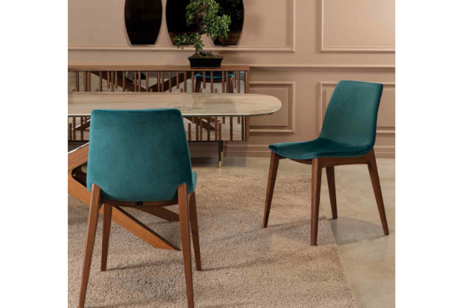 The Aralia dining chair is a standout addition to any modern dining room. Its gently curved seat and back are designed to conform to your body, ensuring comfort during meals and dinner parties. The vibrant interplay of contrasting colors and materials adds an appealing visual dynamic. Supported by angled legs, this chair not only offers stability but also boasts durability thanks to its high-quality materials, making it a reliable choice for the long term