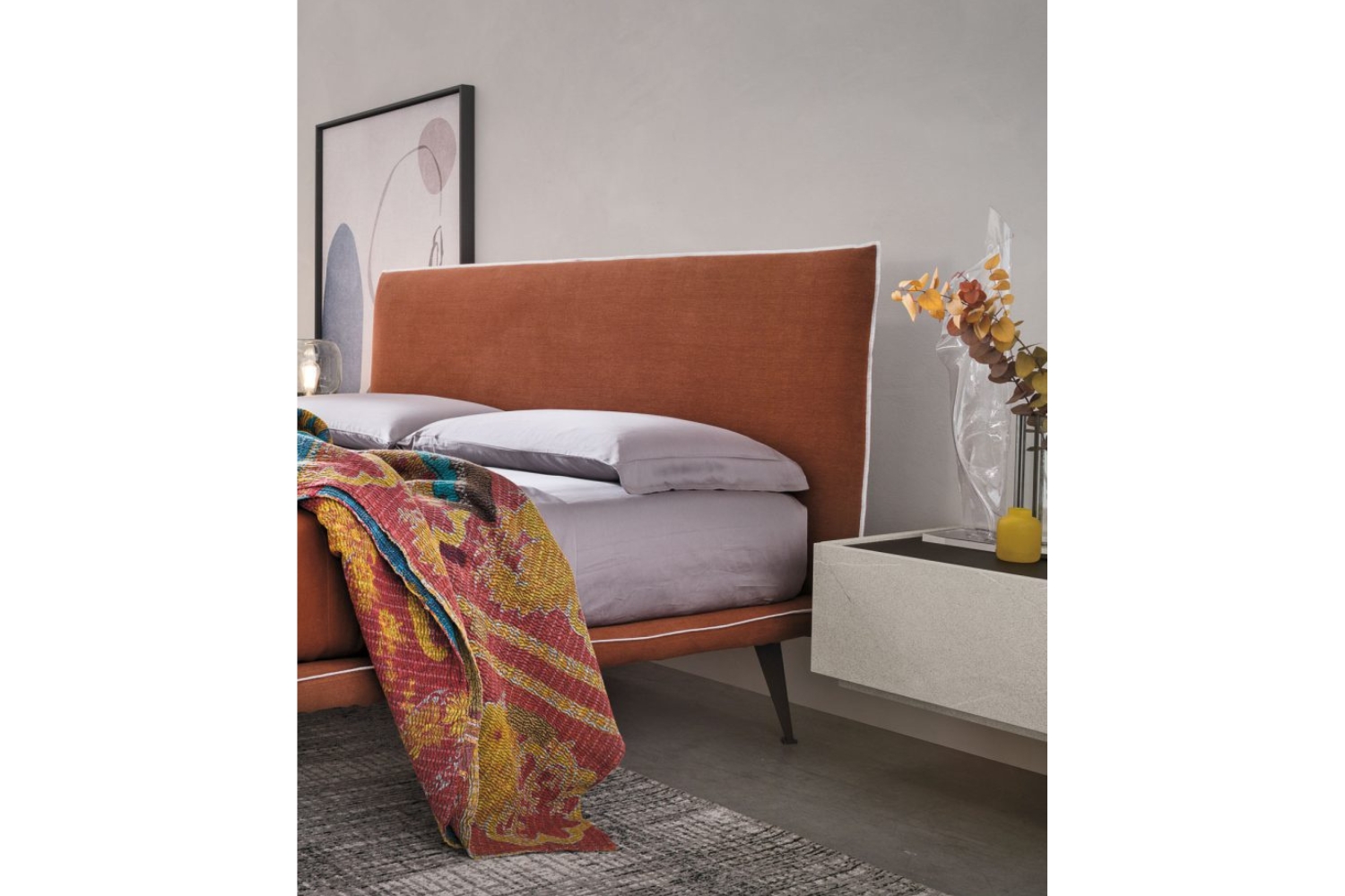 The bed's personality is shaped by the colored yarn, which accentuates the edges of the leather or fabric headboard and bed frame. This feature serves as the defining element, bestowing the bed with its distinct identity. For a more understated look, individuals may select a tone-on-tone yarn, whereas those seeking to make a striking statement can opt for contrasting colors to highlight their details.