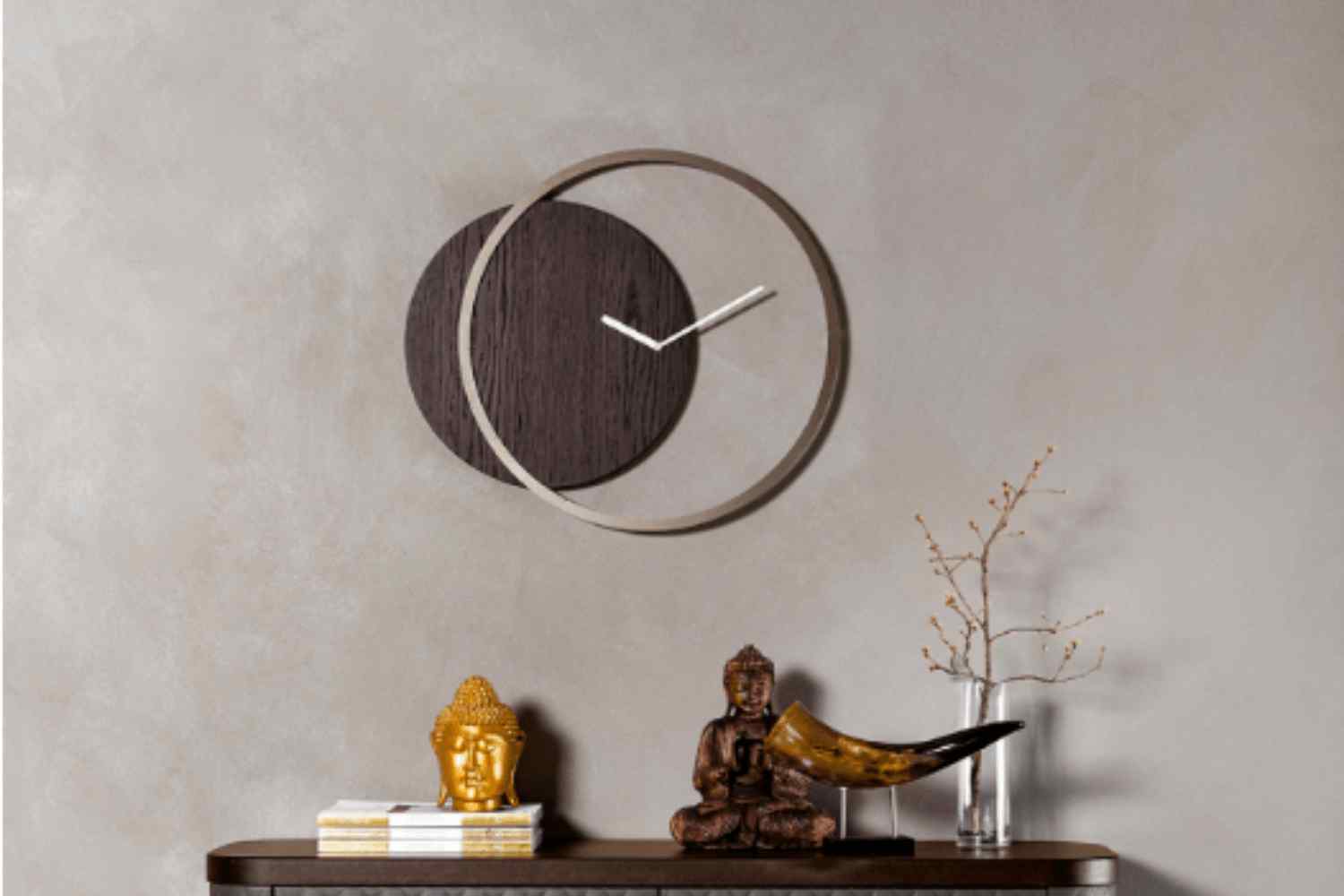 A fusion of wood and metal is embraced in crafting an analog clock that embodies simplicity and design. The addition of a satin gold-finished needle imparts a subtle touch of elegance.