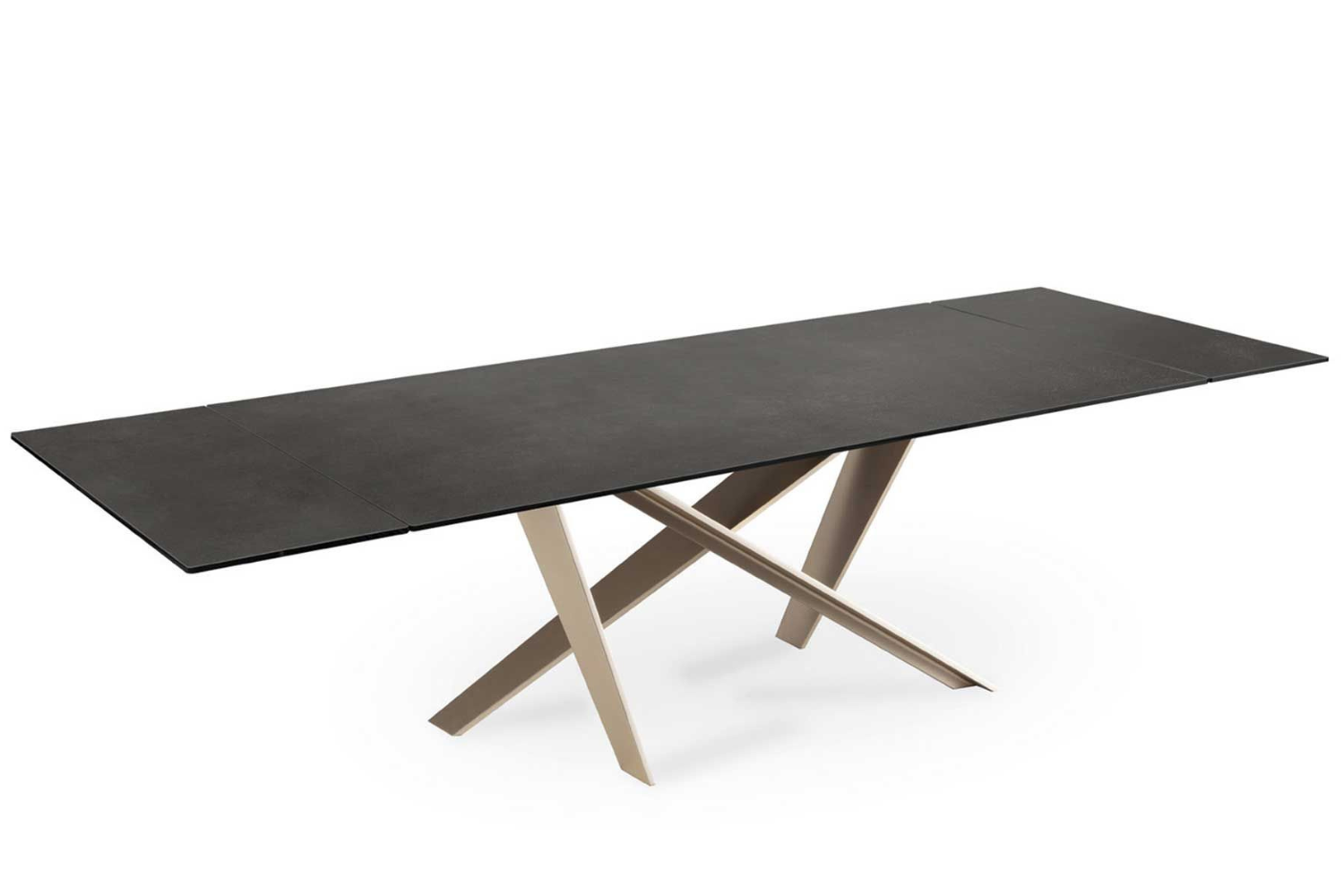Introducing our fixed dining table. Crafted with a base and track made of painted metal.Available with ceramic tops for further customization.
