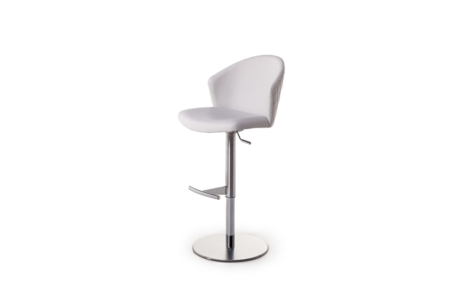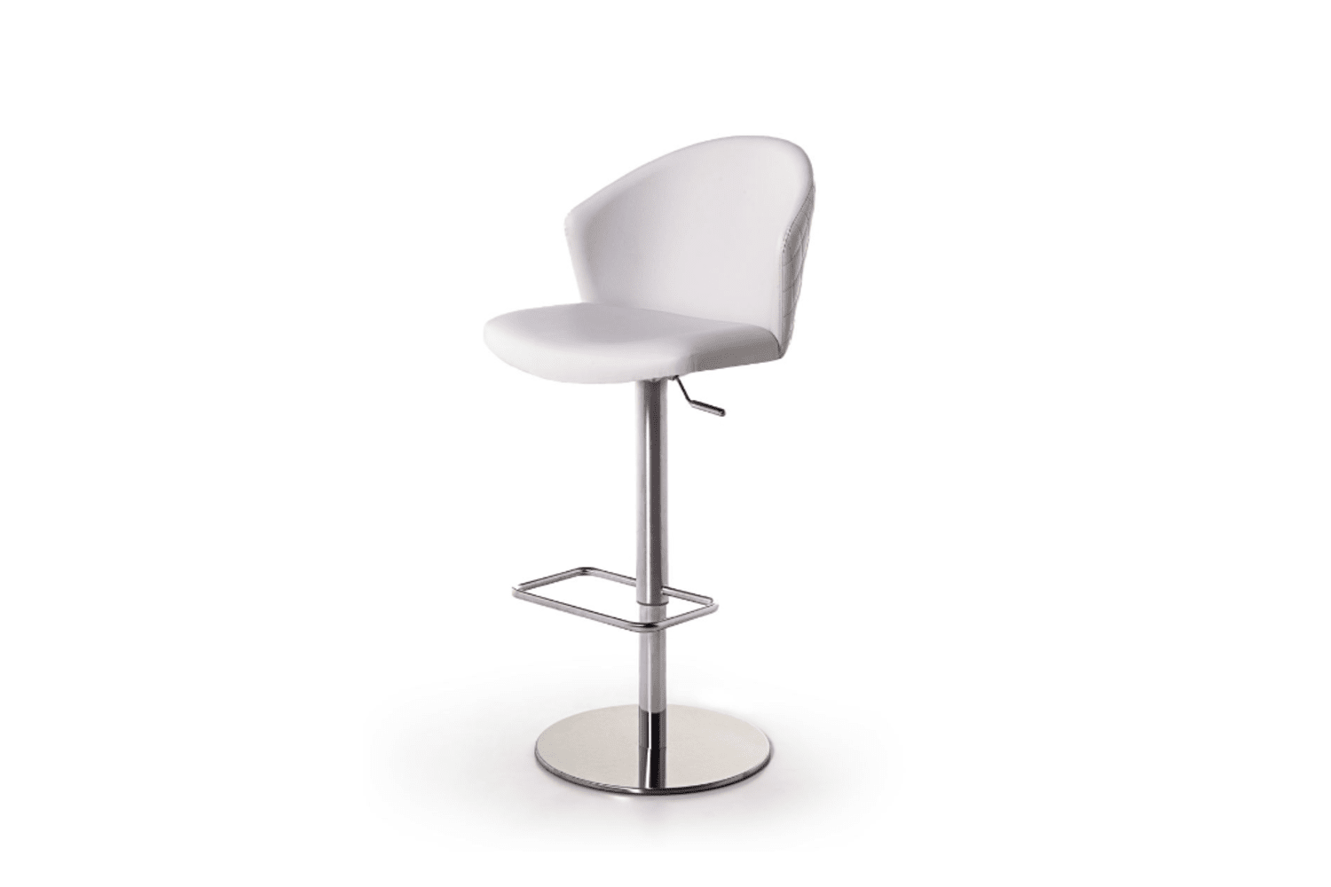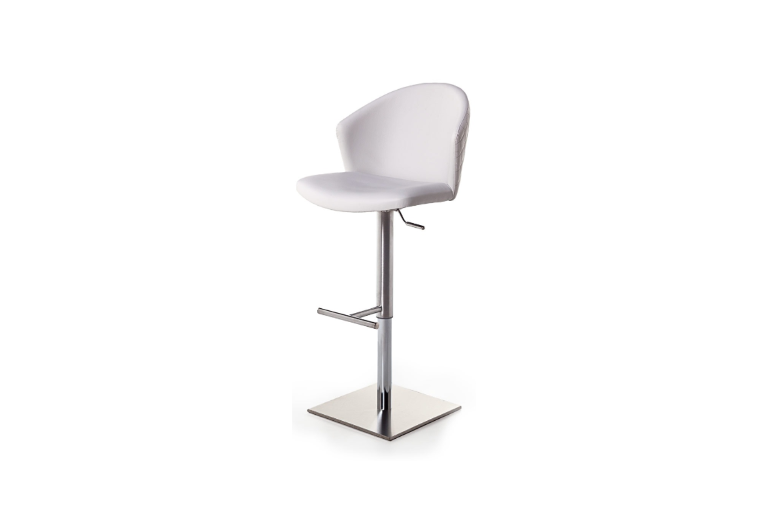 Height adjustatble barstool with plywood seat and back CNC machined, high density foam, upholstered with fabric, velvet, leatherette or leather. Available in several finishes and base options. Outer side of chair’s back can be quilted on request.