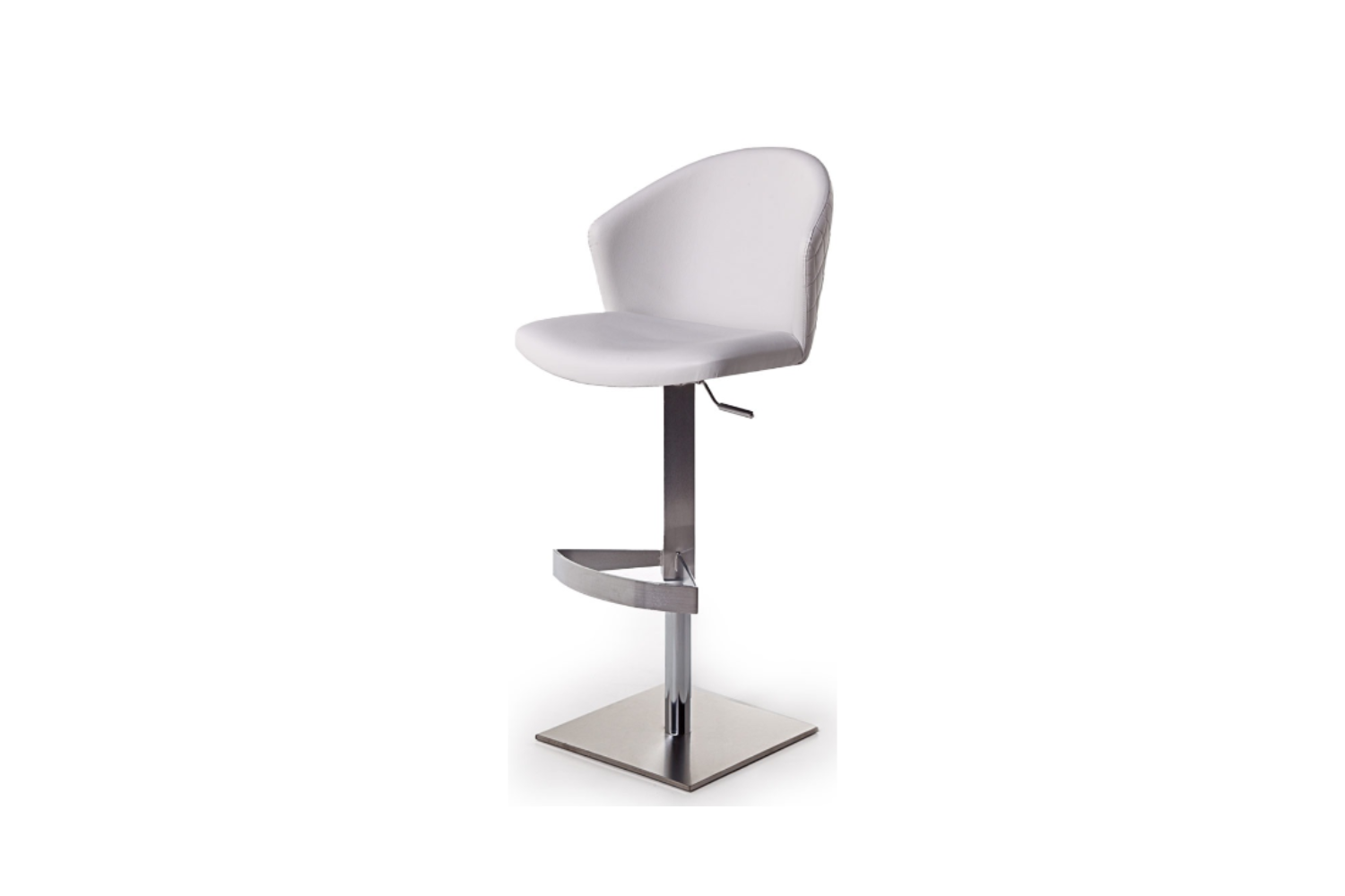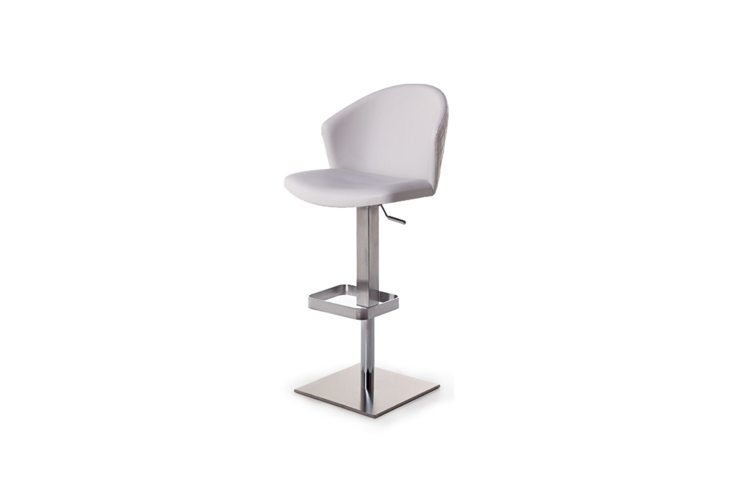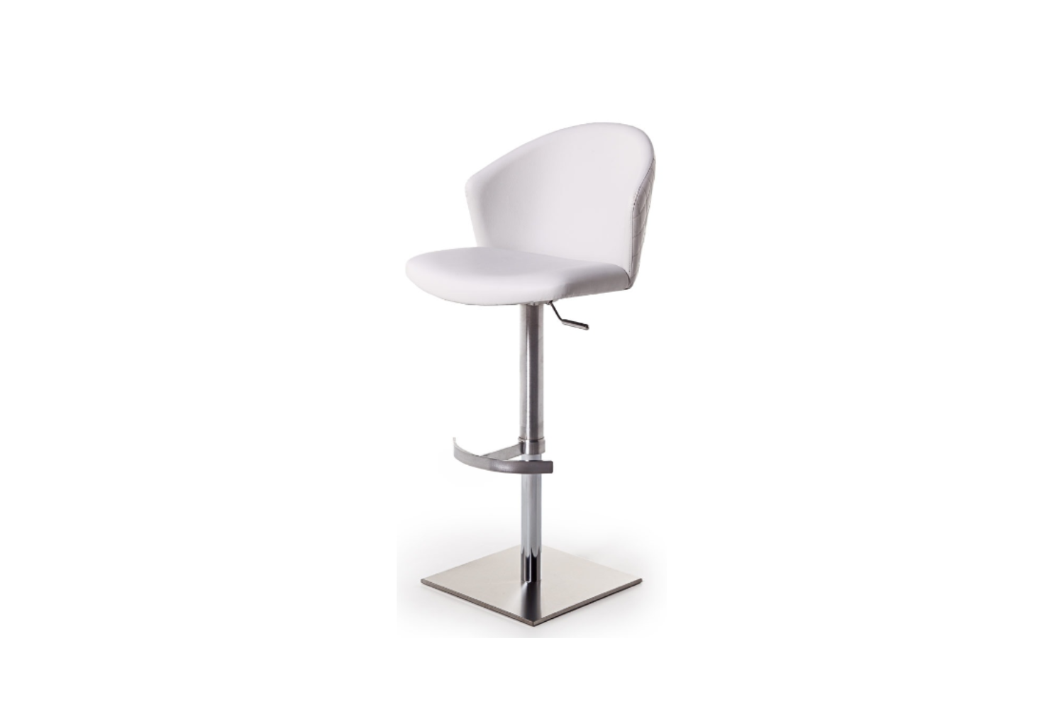Height adjustatble barstool with plywood seat and back CNC machined, high density foam, upholstered with fabric, velvet, leatherette or leather. Available in several finishes and base options. Outer side of chair’s back can be quilted on request.