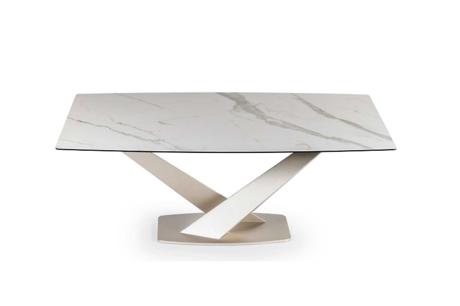 Introducing our fixed dining table. Crafted with a base and track made of painted metal.Available with ceramic tops for further customization.