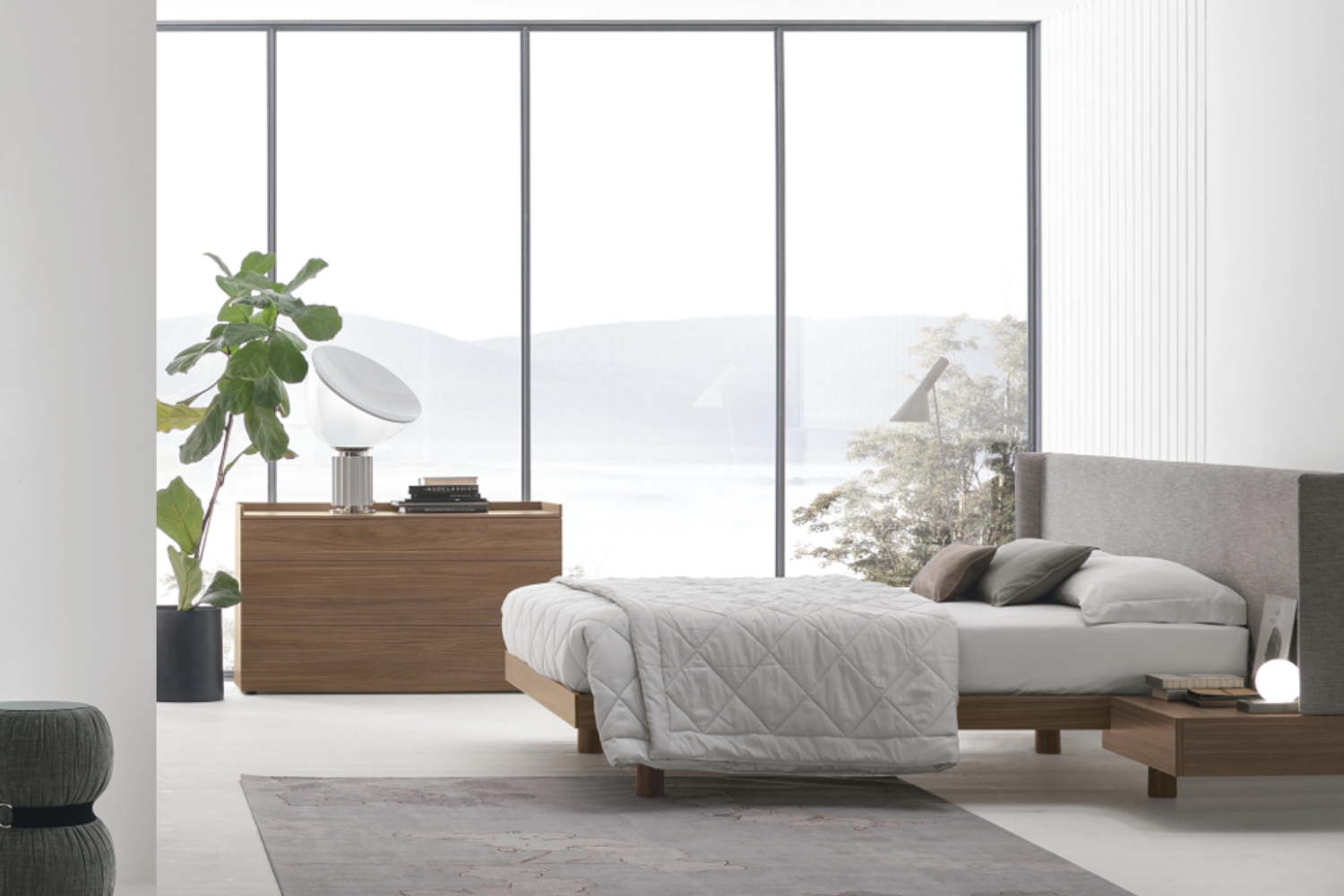 Through both its design and functionality, the Fusion bed seamlessly integrates diverse elements to create a striking ensemble consisting of a headboard, bed frame, and bedside units.