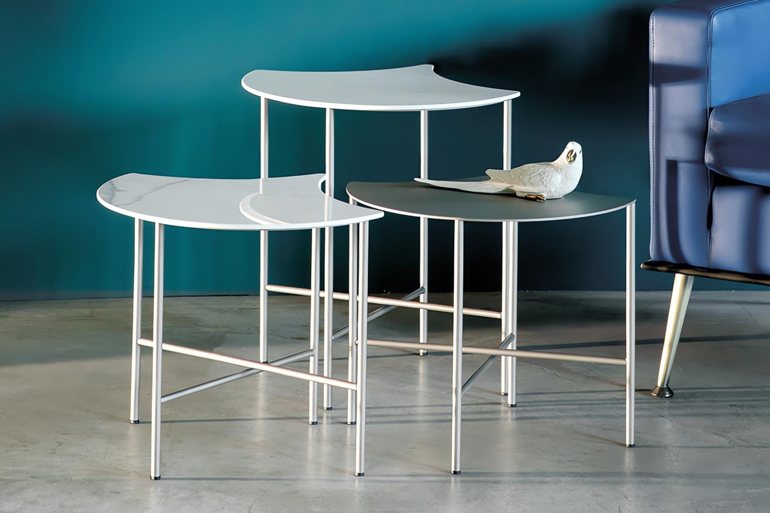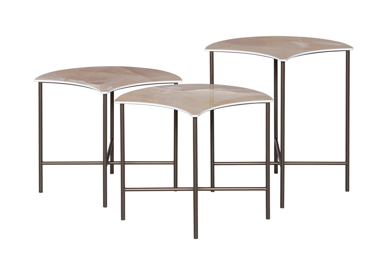Inspired by the elegant, fan-shaped silhouette of the ginkgo leaf, this table is a stylish addition to your contemporary living space. With its chic design featuring soft curves and rounded accents, it enhances your decor while providing versatile functionality. The striking criss-crossed base adds a touch of sophistication, making it a standout piece whether displayed alone or paired for a cohesive look. Use its surface to showcase decor or create an inviting oasis for food and drinks as you unwind on the sofa, embodying both style and practicality in your home