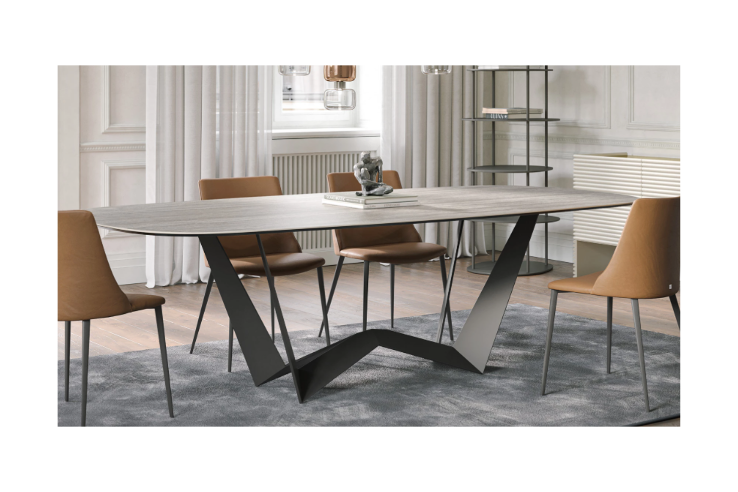 A perfect reversible table for any occasion. A base in painted steel with glass tops available in different finishes. Choose the one that suits you best and create your own living room.