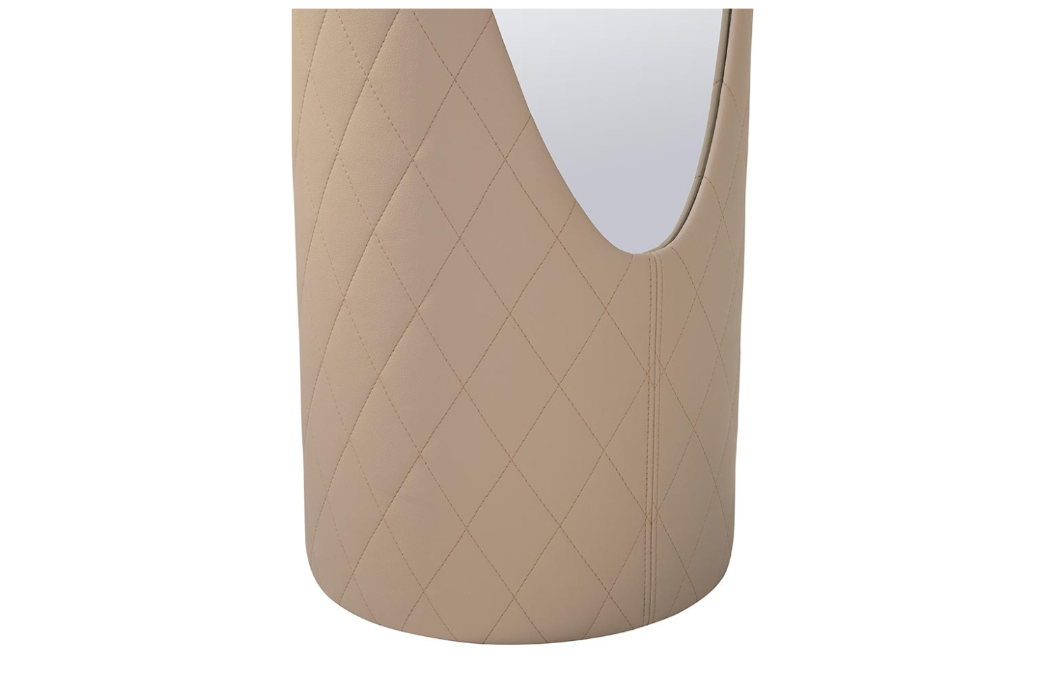 Elevate the style of your modern bedroom with the striking Kolonika Elite mirror. Its unique structure transitions from a rounded base to an angled, narrower top, offering a sculptural and contemporary aesthetic. The upholstered frame features diamond-patterned stitching, adding a touch of elegance. Designed for both form and function, this free-standing mirror is not only a captivating decor piece but also a practical solution for checking your reflection.