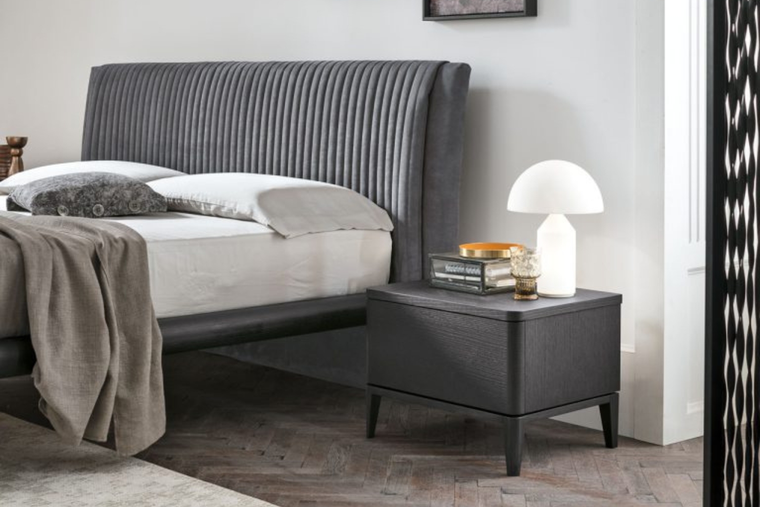 Experience tranquil dreams with the exquisite Marlena bed from Tomasella. Its headboard features exquisite stitching, creating a charming striped pattern, while the appealing design incorporates a box frame with integrated storage. The upholstered headboard provides both style and comfort, making it perfect for leisurely reading or TV watching. Ample space in the pull-up or soft-close storage compartments easily accommodates extra pillows, blankets, and sheets. Crafted with top-tier Italian craftsmanship, this bed ensures unparalleled support and durability for years to come.