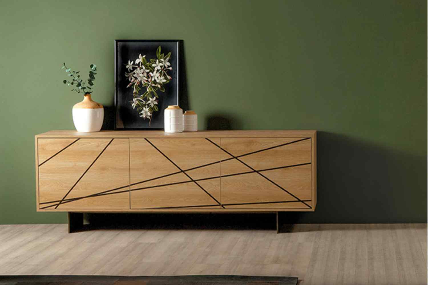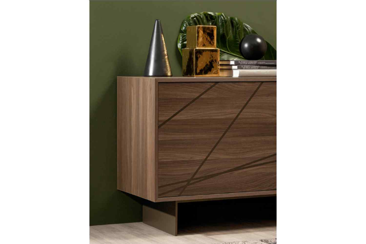 Crafted with the finest Canaletto walnut or vibrant oak finishing, this sideboard elevates luxury with the illusion of relief in its lines. The juxtaposition of colors and textures creates a harmonious contrast, seamlessly blending simplicity with elegance. Available in two or three doors, it is supported by a sturdy metal base with a bronze stone varnish—an indispensable addition. Simply irresistible.