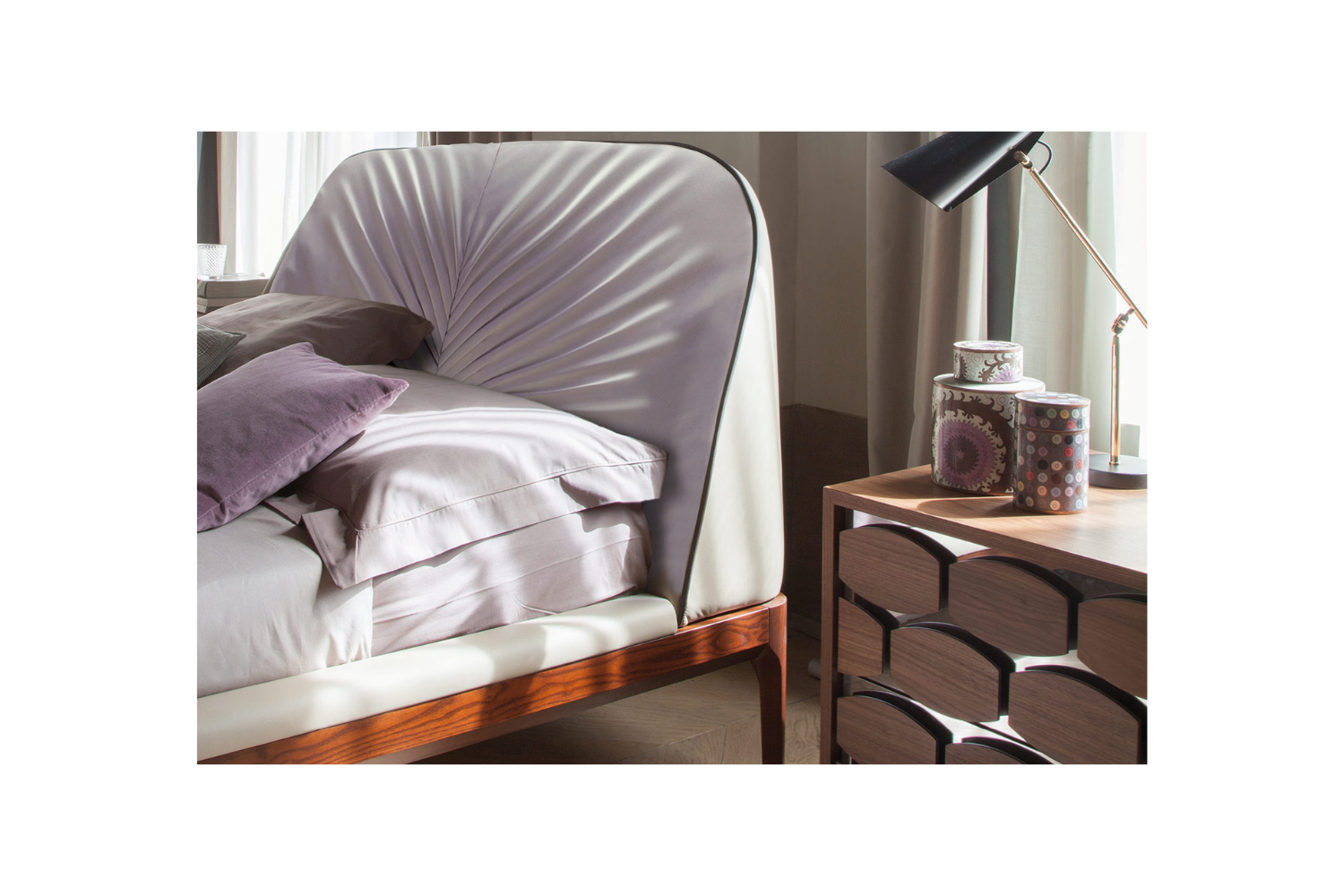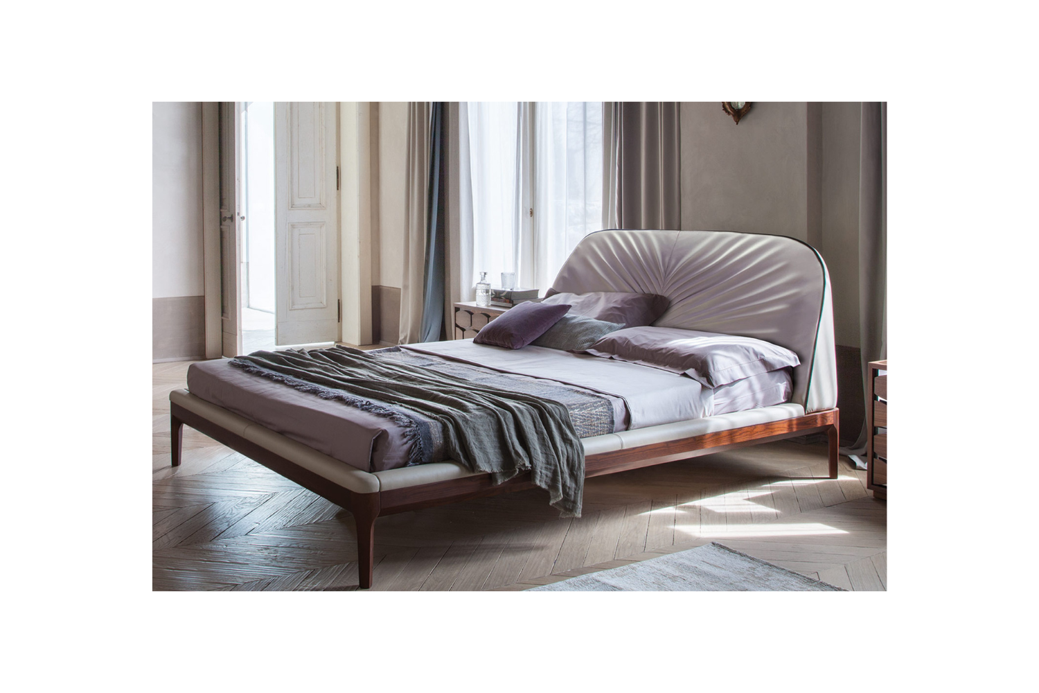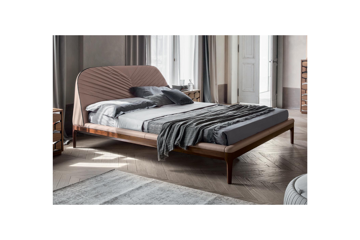 Elevate your bedroom with the Michaelo Bed, a perfect blend of luxury and comfort. The bed’s striking headboard features a fan-shaped upholstery pattern, adding a sophisticated touch of posh appeal to any modern room. Crafted with the finest materials, the Micahelo Bed is built to endure, ensuring it remains a timeless statement piece in your home. Not only is it visually stunning, but it also offers exceptional comfort and support for a perfect night's sleep.