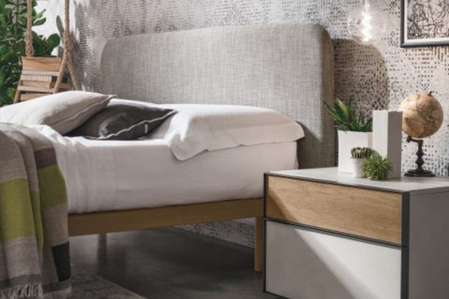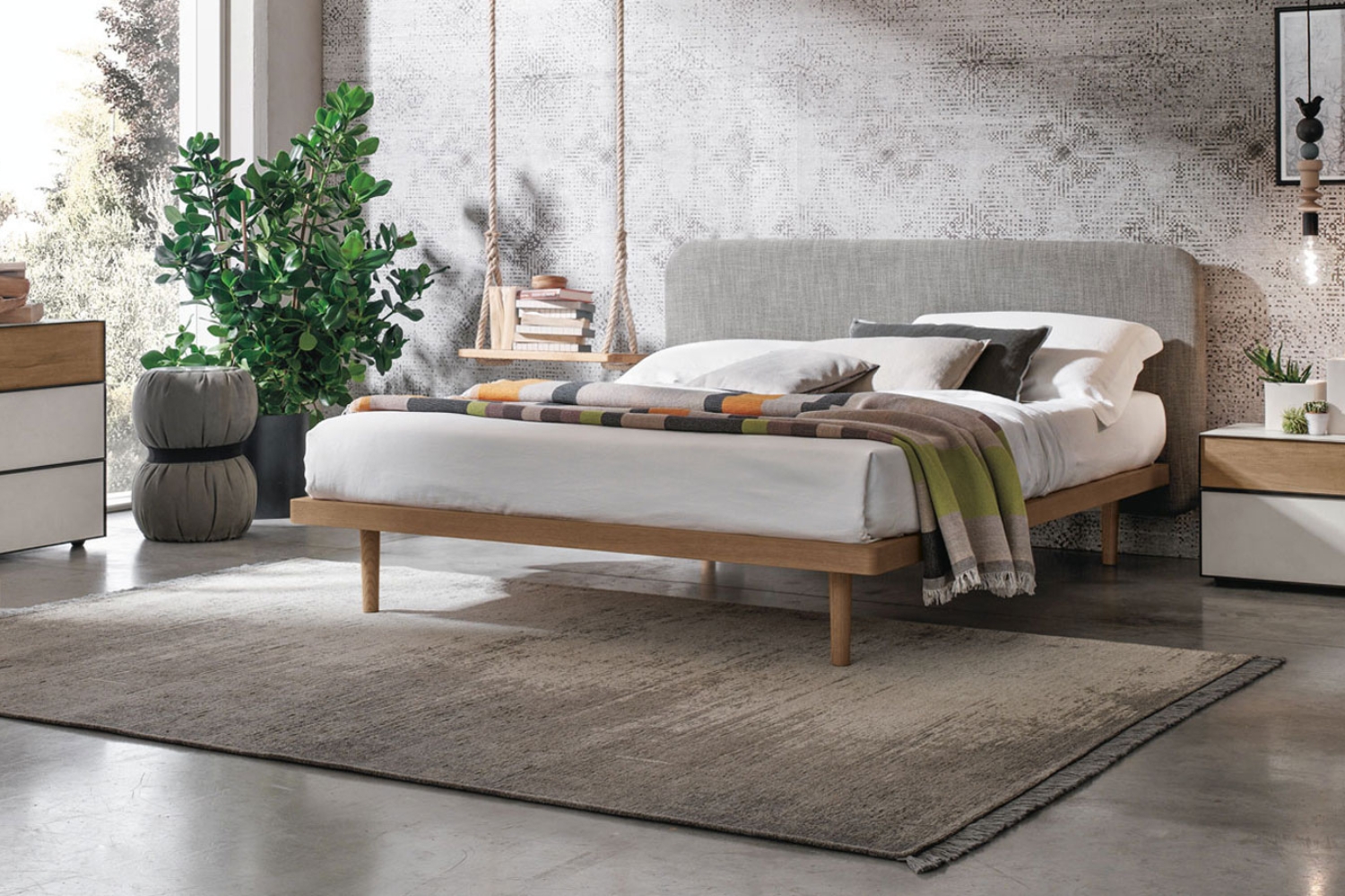 Enhance the aesthetic of your contemporary bedroom with the timeless elegance of the Milly bed by Tomasella. This chic silhouette boasts an upholstered headboard with rounded corners and a sturdy yet sleek frame. The headboard's plush texture provides comfortable support for sitting up to read or watch TV. A dynamic contrast is achieved through contrasting finishes, adding a captivating touch to the design. Choose between pull-up or soft-close storage options to conveniently store extra pillows, blankets, and sheets. Crafted with exceptional Italian craftsmanship, this bed is built to withstand the test of time, ensuring longevity and durability for years to come.