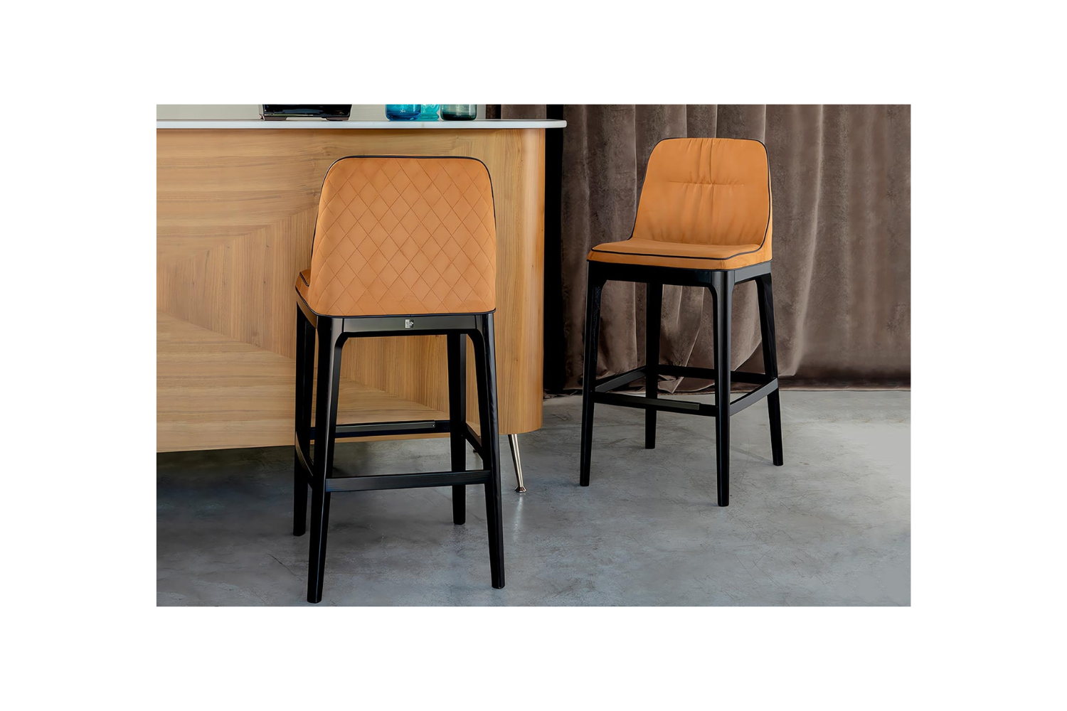 Elevate your bar space with the sophisticated Mivina Elite bar stool, an exceptional blend of elegance and craftsmanship. The seat is adorned with refined elements, including intricate piping along the perimeter, stylish linear detailing on the backrest, and regal rhombus quilting on the back. These exquisite touches reflect the meticulous attention to detail that defines EuroHome’s commitment to quality. Soft cushioning and luxurious upholstery ensure that enjoying a drink at the bar becomes a truly indulgent experience.