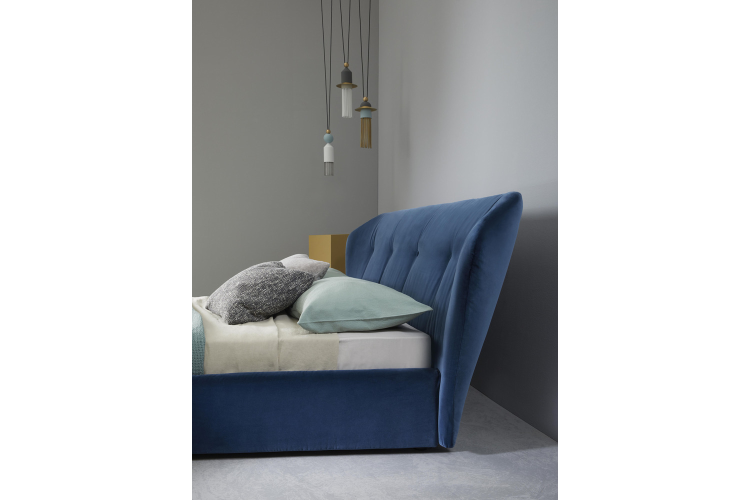 The version featuring a floor bed frame presents a more substantial option and embodies the timeless essence of the New York line, while retaining the iconic quilted headrest. The covers are completely removable for effortless cleaning and maintenance.