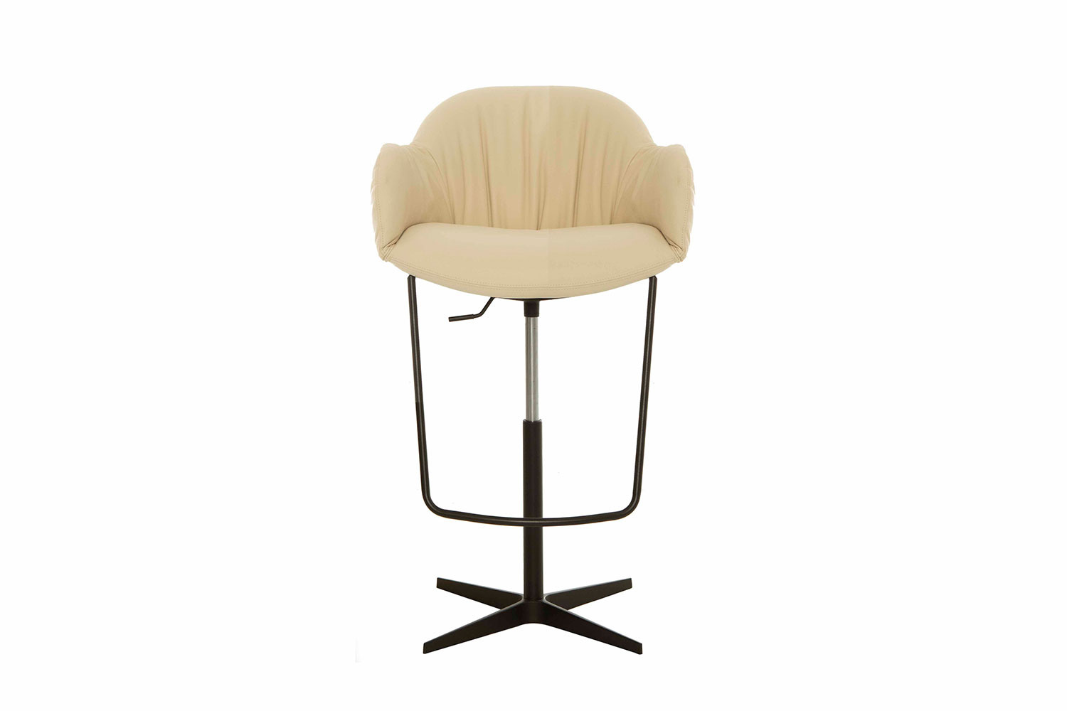 Luxury is ensured while enjoying a drink, with the adjustable height mechanism making it simple to reach either the bar or counter. The base swivels for convenience, and the prominent footrest provides ample room to support your feet. Luscious memory foam padding, lined with soft upholstery, offers a cloud-like comfort to lounge on. The curved lines of the seat effortlessly combine elegant aesthetics with the ability to envelop your body, all resulting from meticulous attention to style and functionality