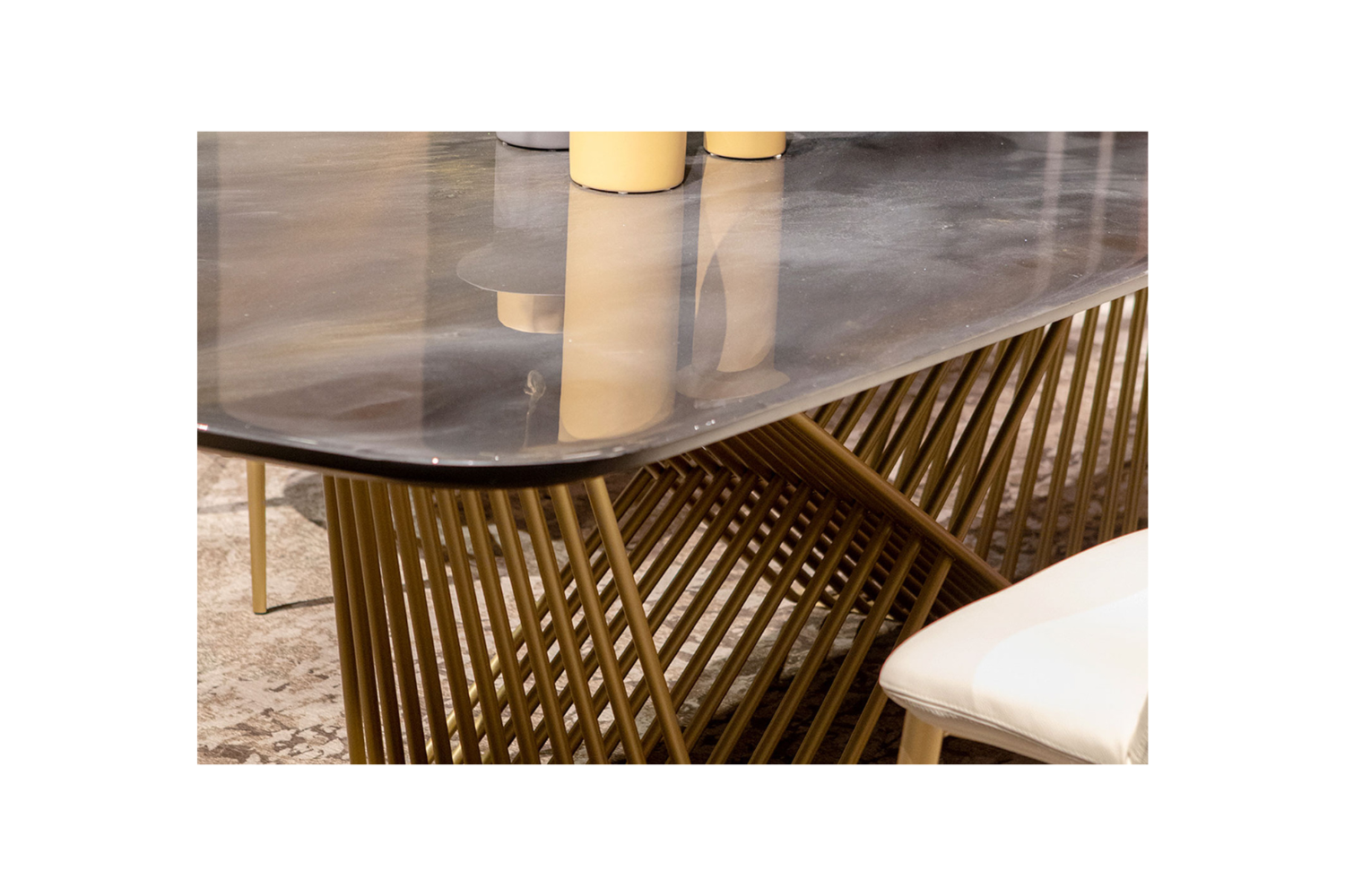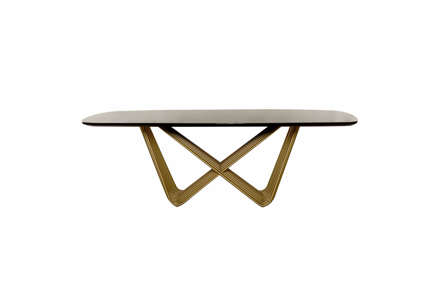 The Oriono Courin Dining Table is a true masterpiece that blends art and functionality. Its unique design makes a bold statement in any dining space, showcasing the perfect balance between modern elegance and timeless craftsmanship. The intertwining metal tubes of the base, inspired by the infinity symbol, create a visually striking element, while the Oriono Courin resin finish on the tabletop evokes a celestial elegance. The captivating fusion of grey and gold hues creates an enchanting look, ensuring each table is a one-of-a-kind creation. Perfect for hosting gatherings, this dining table offers ample space to accommodate your guests in style.