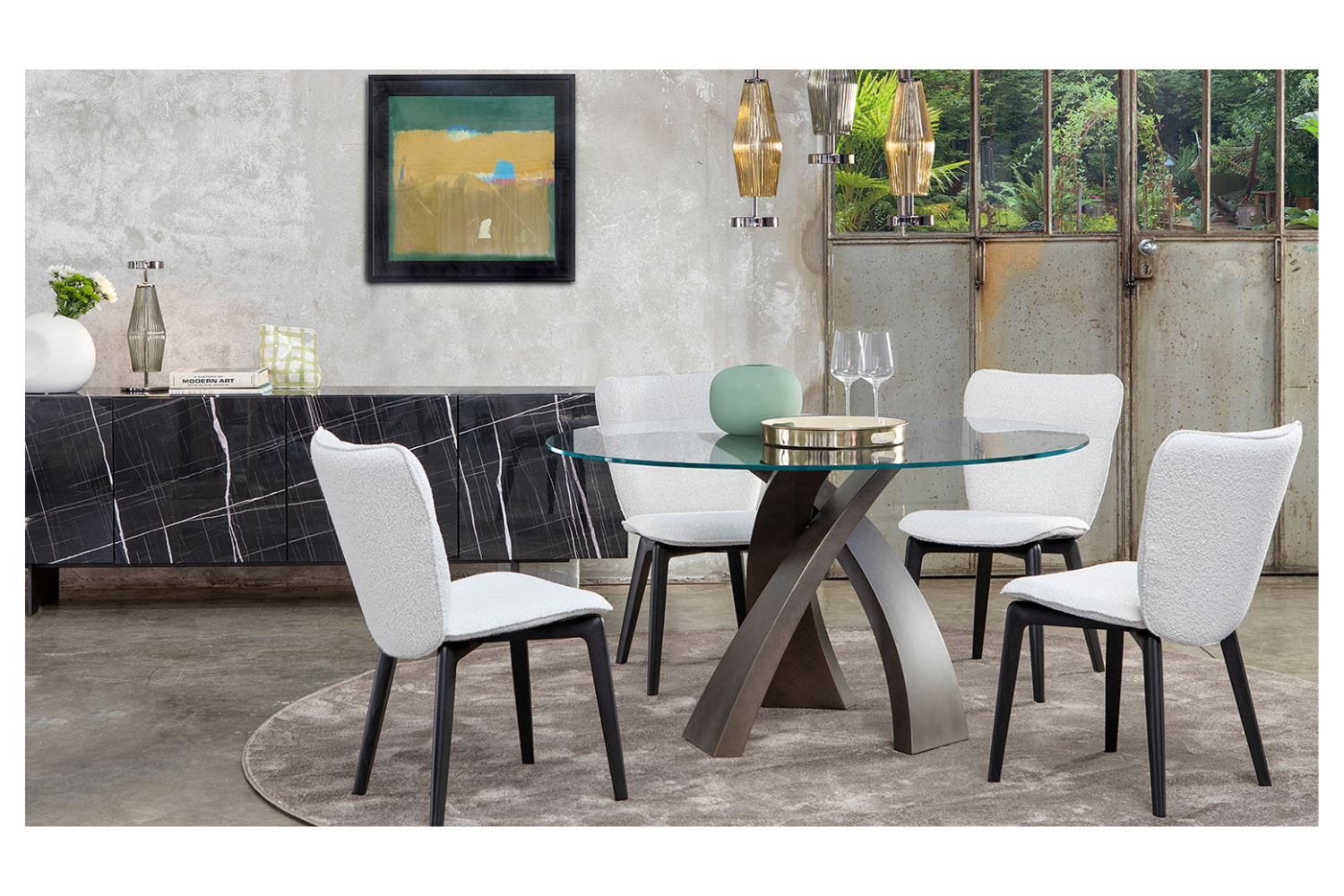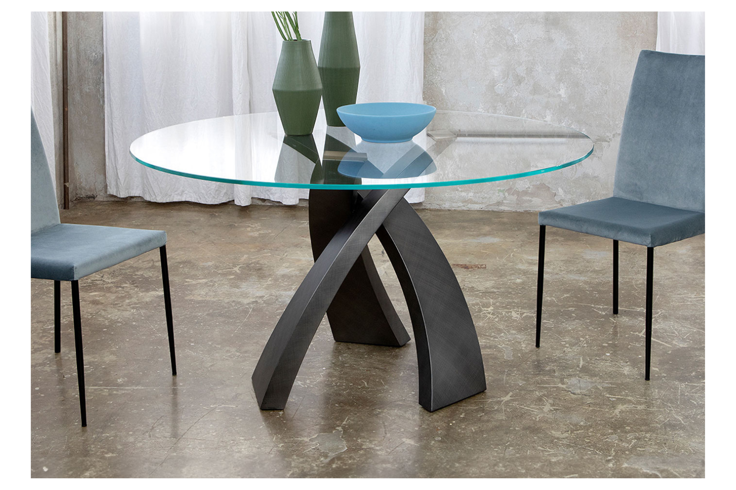 The EuroHome Ravioli Brushed Dining Table is where practicality meets artistry, offering a sophisticated space to gather. Three elegantly woven metal legs form the sculptural base, showcasing meticulous craftsmanship and attention to detail through their brushed finishes. The glass top provides a sleek, transparent view of the base, creating a harmonious balance of design and function. Available in round or oval shapes, the Ravioli table can accommodate any occasion, from intimate meals to larger family gatherings. Manufactured in Italy, it’s offered in three premium top finishes—porcelain, wood, and glass—to complement the refined, modern aesthetic.