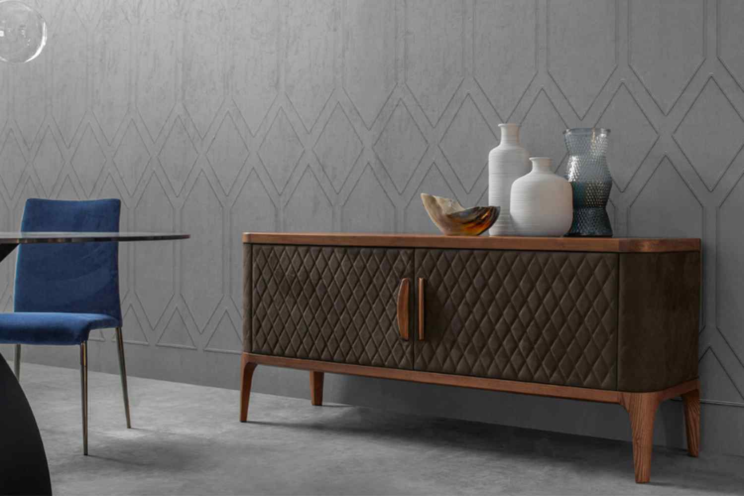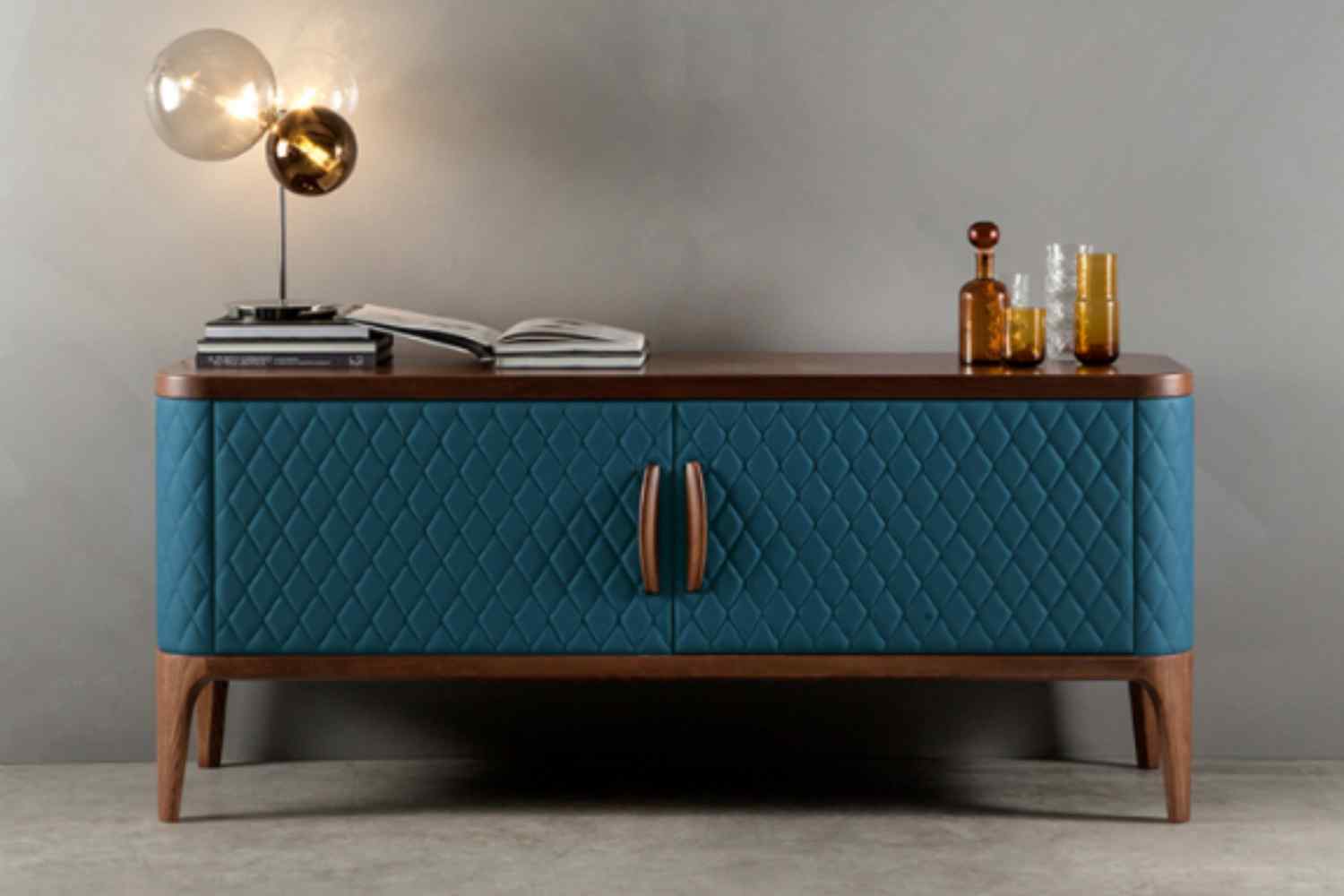 Tifara, offered in both low and high configurations, takes inspiration from a subtle and sophisticated notion of luxury. Crafted from ash wood and available in Canaletto walnut, dark oak, or black ash finishes, it harmoniously combines with leather or eco-leather covering. The quilted upholstery, highlighting the mastery of Italian craftsmanship, gracefully envelops Tifara, seamlessly merging two technically distinct worlds to form a distinctly elegant product. This wooden TV stand, adorned with various finishes and handmade quilting, is a furniture piece that elevates any living space with exceptional Italian artistry.