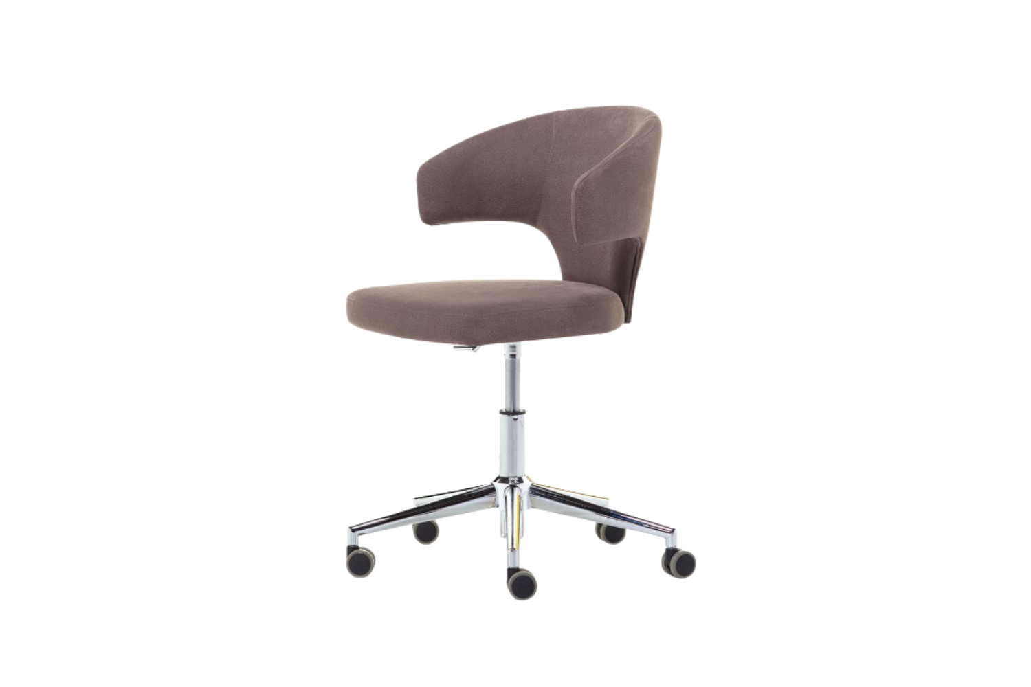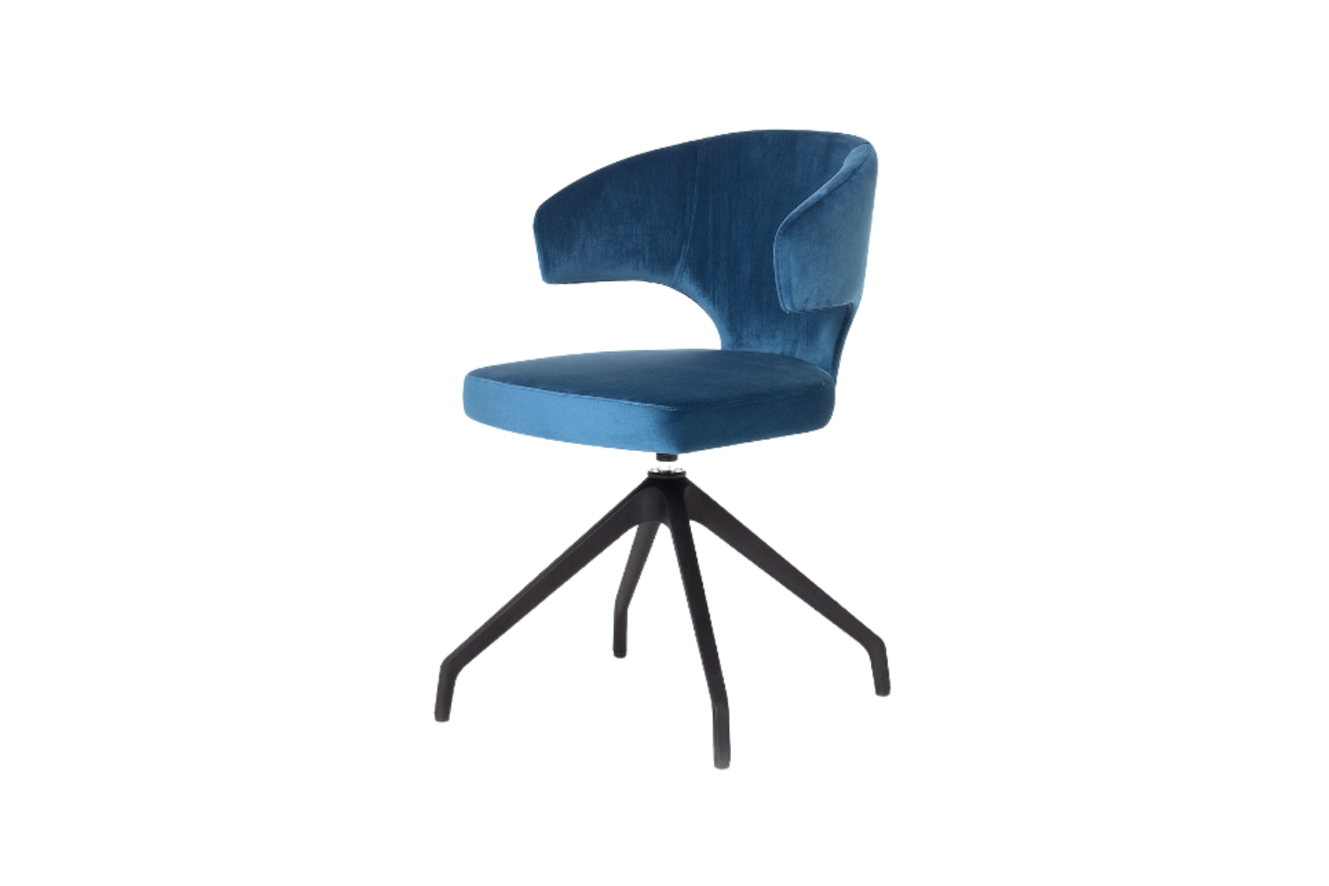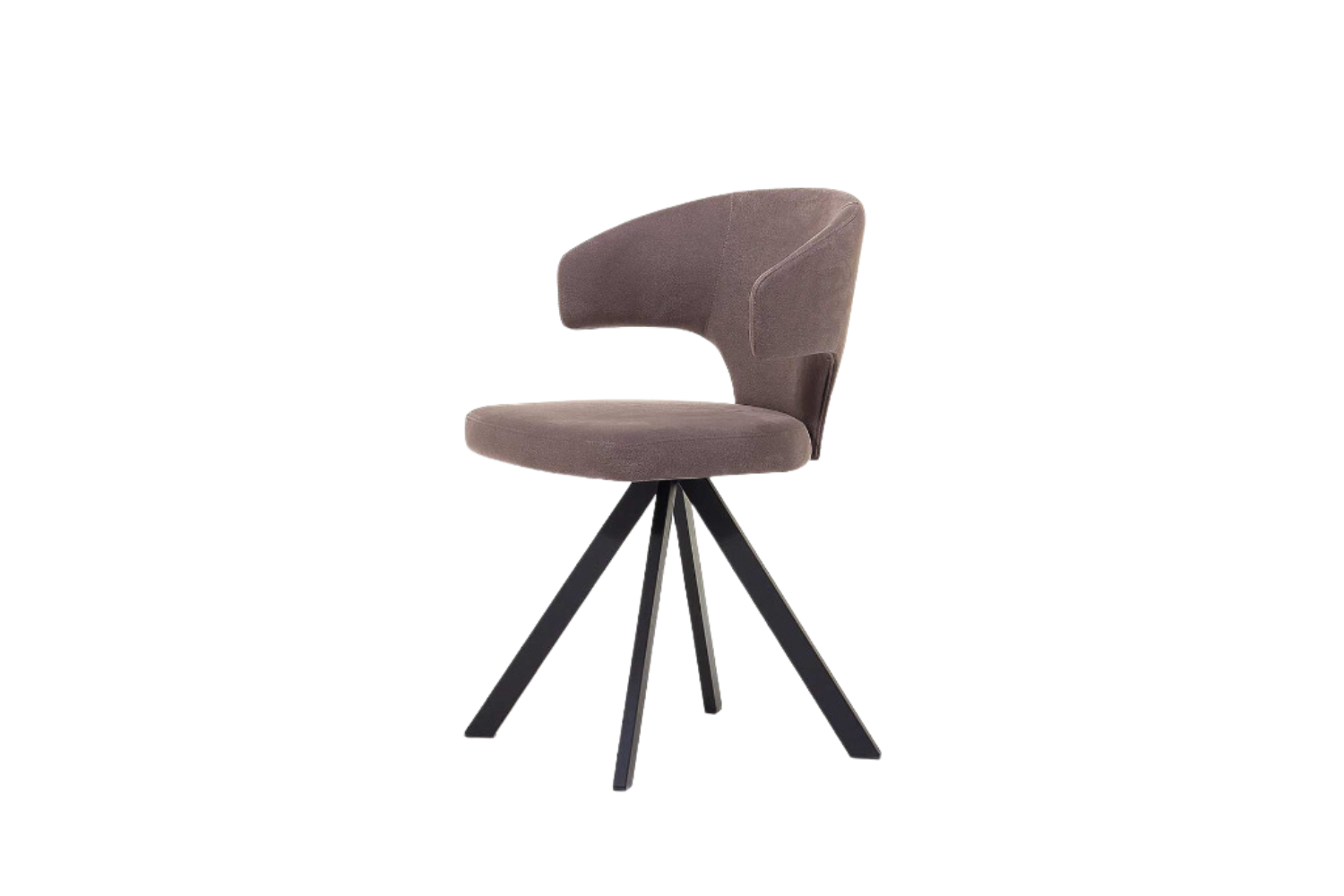 Armchair with plywood seat and back CNC machined, high density foam, upholstered with fabric, leatherette or leather. Available in several finishes and base options. Back side of chair’s back is available also with quilted fabric Dandy-T (price Cat. B).