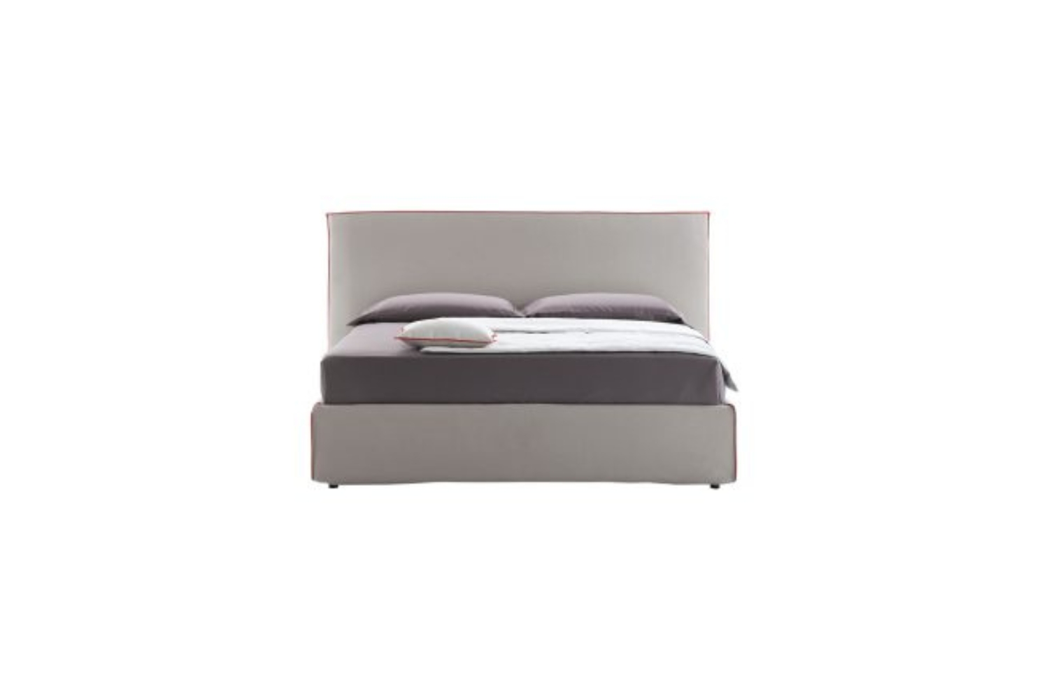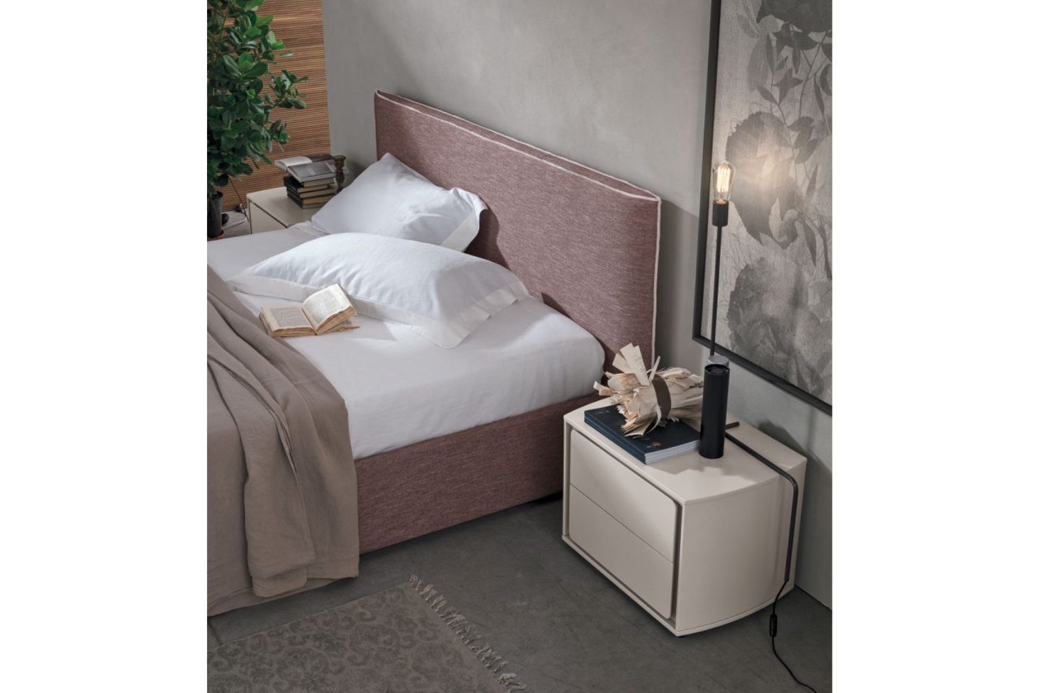The slender headboard caters to those desiring a neatly arranged and geometrically cozy upholstered bed. It combines classic design elements with a modern twist, evident in its visible seams, making it adaptable and fitting for various decor styles.