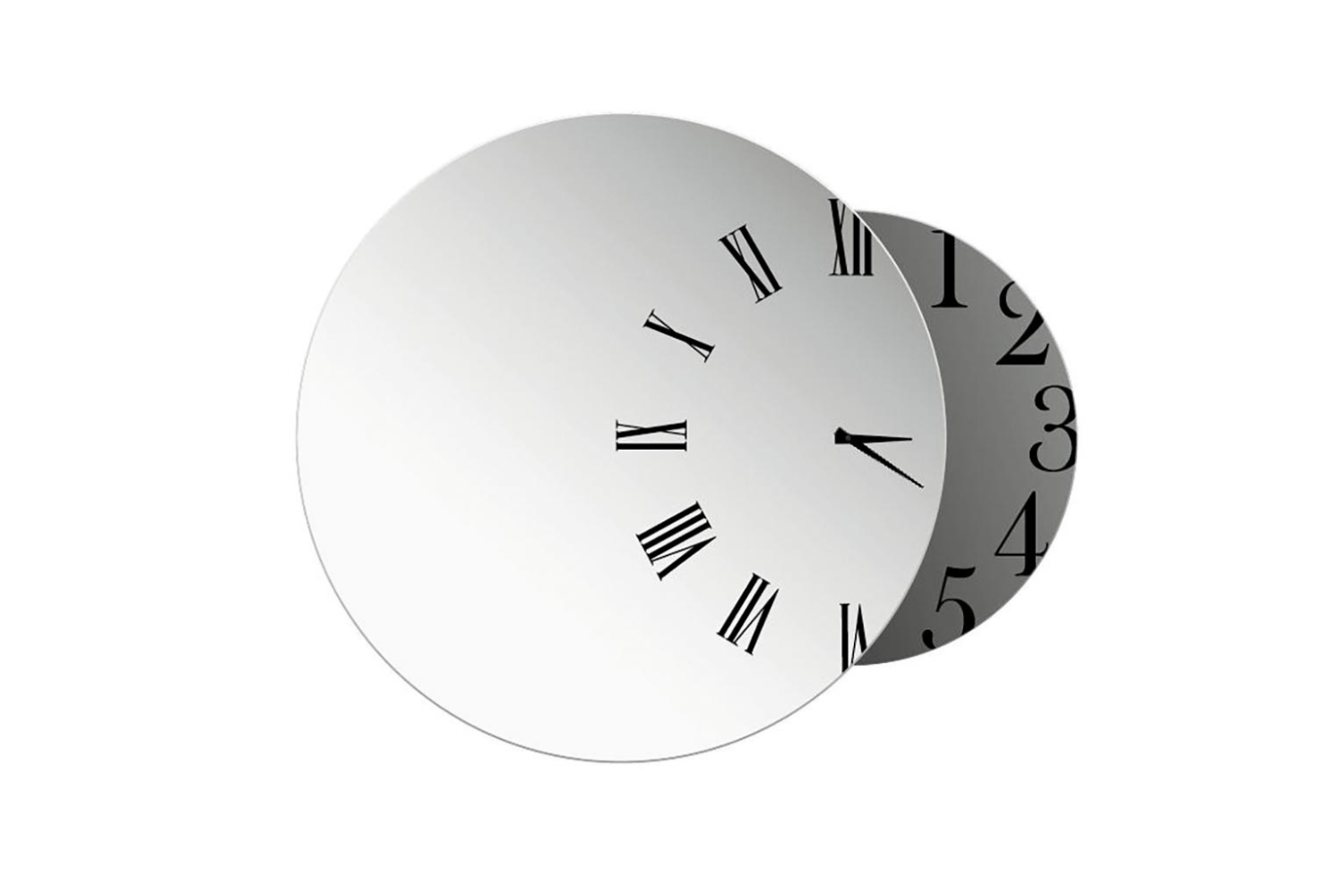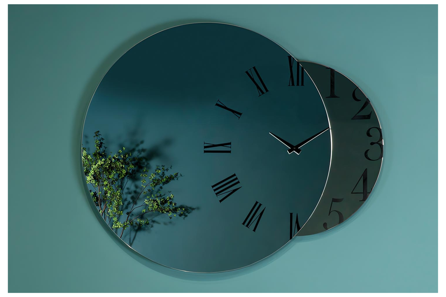 The Fusina mirror is a harmonious blend of function and artistry, ideal for contemporary homes. Its design features two overlapping circles—one adorned with Roman numerals and the other with Arabic numbers—combining to create a fully functional clock. This innovative design allows you to check the time and your reflection effortlessly. With its creative use of shapes, decals, and finishes, the Fusina mirror transforms into an elegant wall art piece that enhances any modern space.