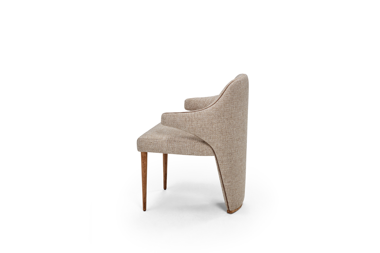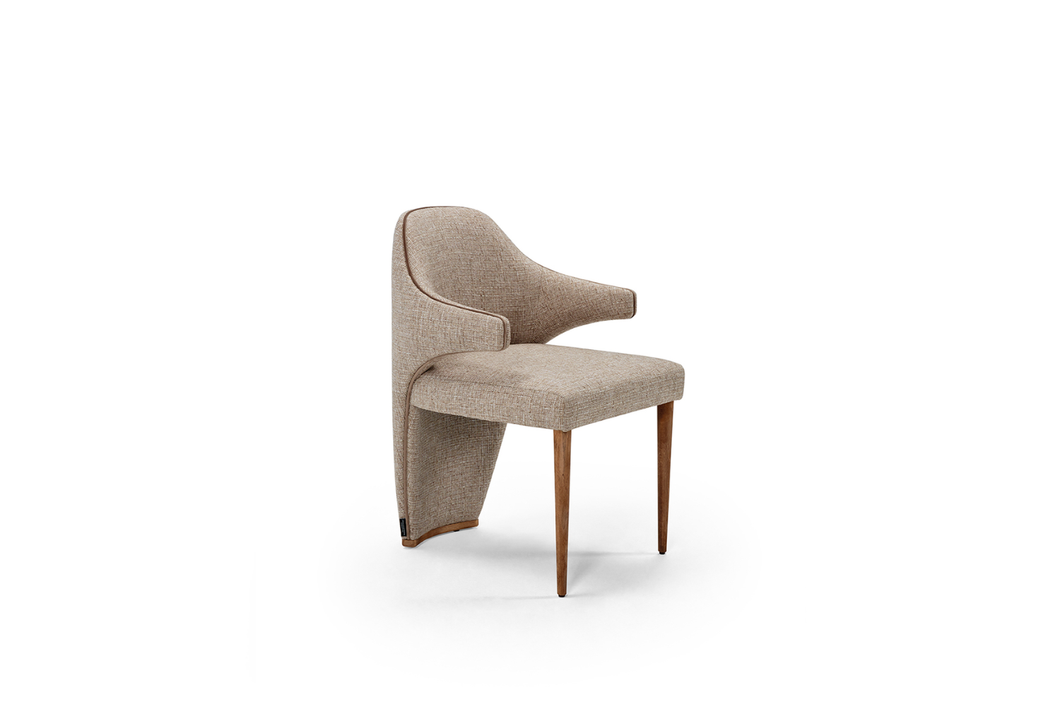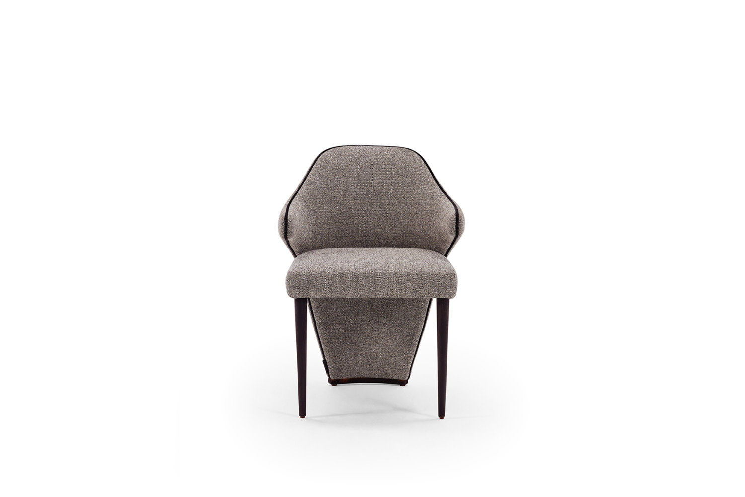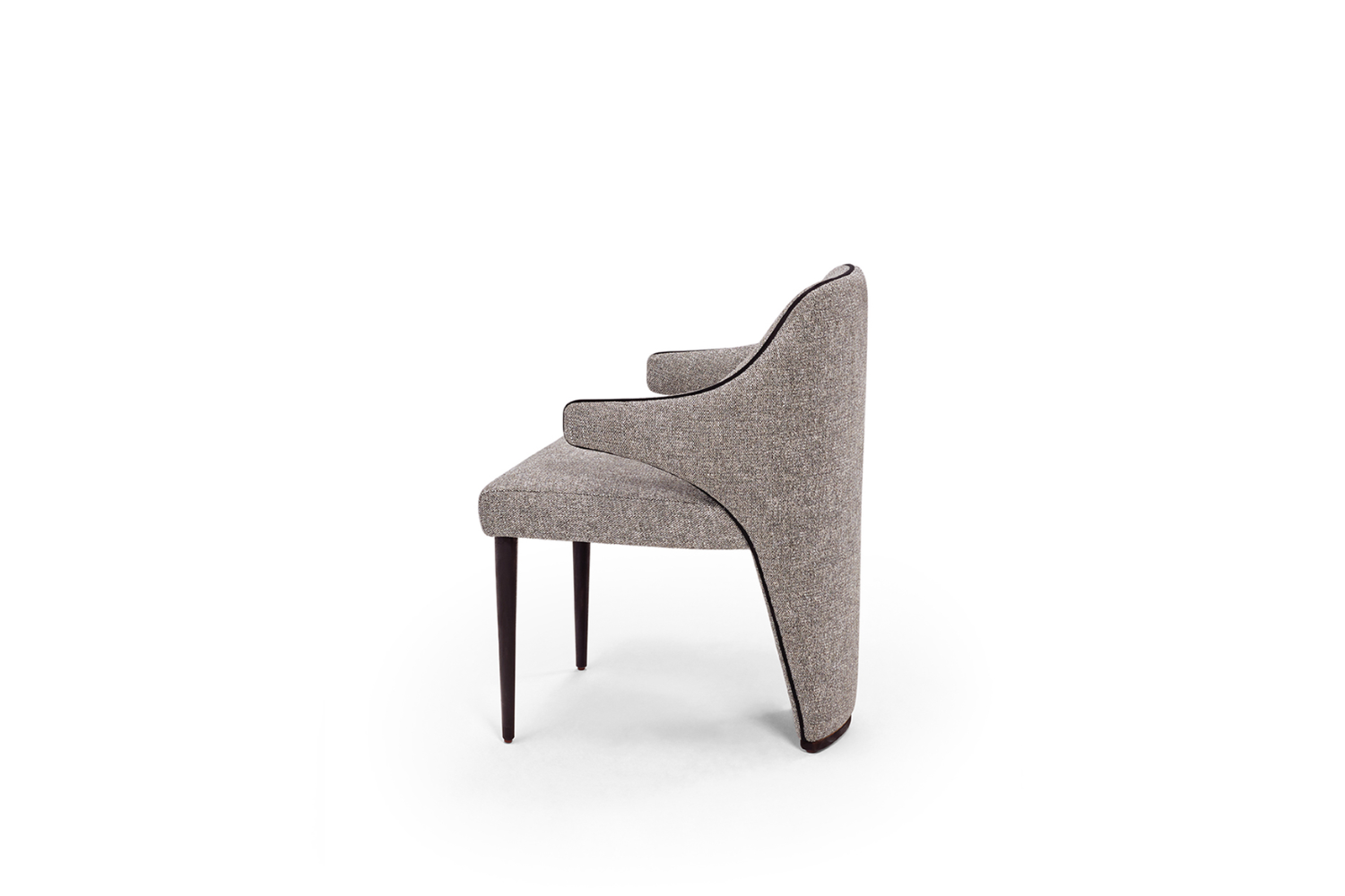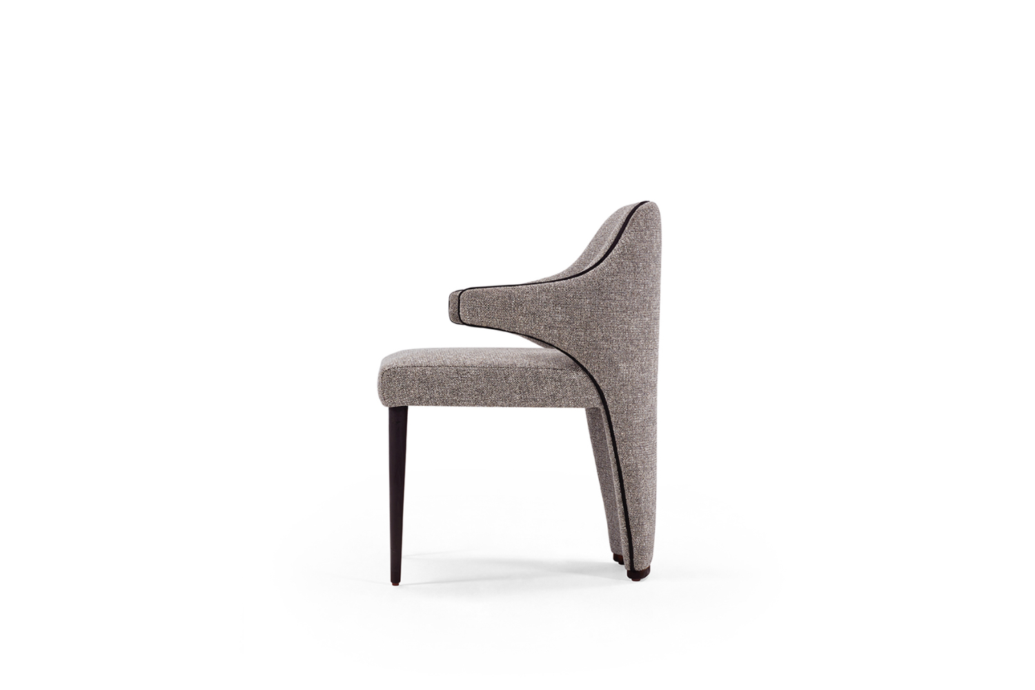 The Merin Dining Chair boasts an inviting design crafted to envelop you in luxurious comfort. Its bold aesthetic is perfectly balanced by immersive, relaxing seating. Built on a solid wood frame, Merin features two front legs that can be finished in lacquer or veneered wood colors. The elegantly tapered back extends gracefully to the floor, elevating this chair to an exceptional level of sophistication.