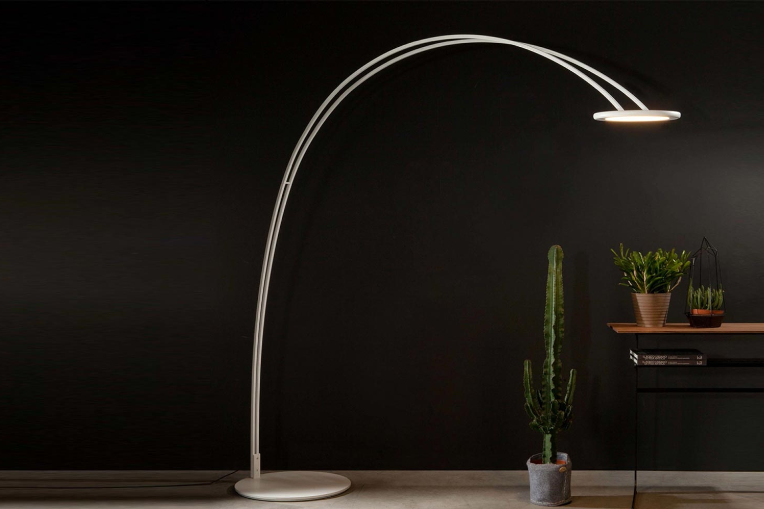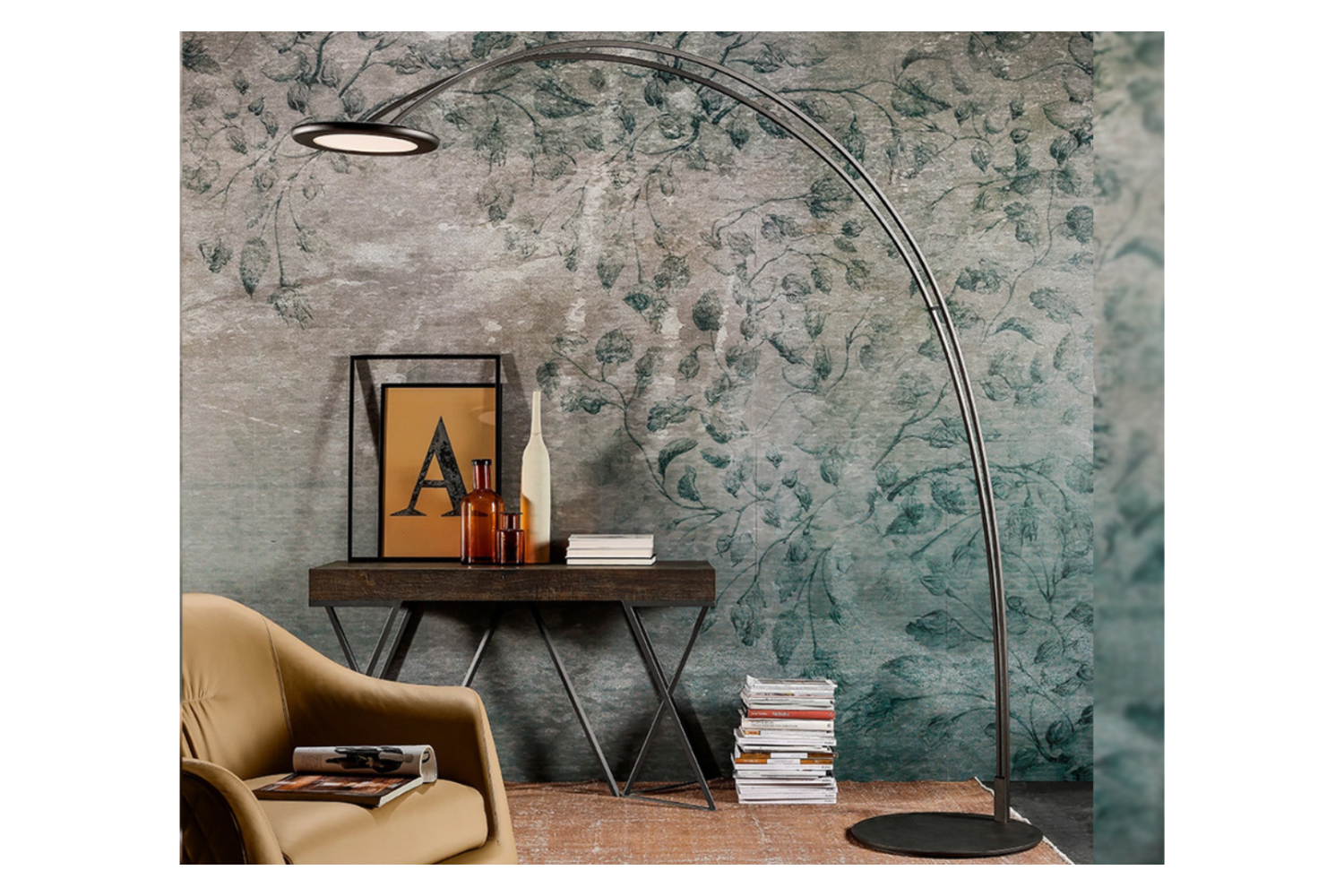 Enhance any modern interior with the bold and sophisticated Odyssey floor lamp. Its striking arched design offers both contemporary flair and focused illumination, making it perfect for use over a chair or couch as a reading light. The unique structure, featuring two metal pieces that widen as they rise, creates an eye-catching silhouette that makes a dramatic statement in any space. The Odyssey floor lamp combines style and functionality, bringing a touch of elegance to your home.
