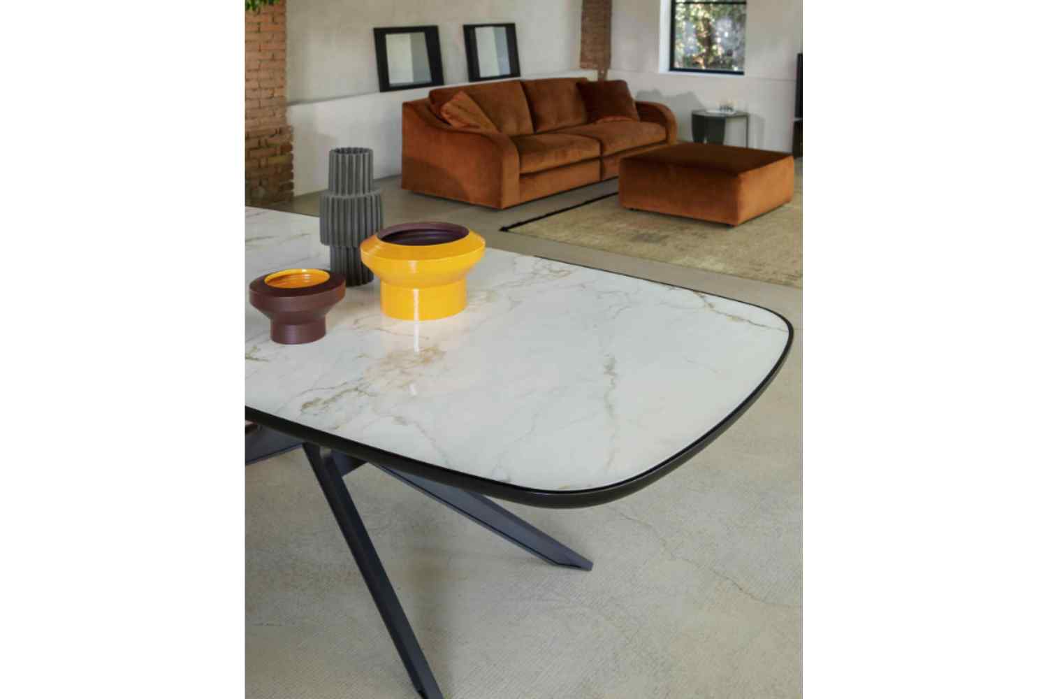 A table flaunting a solitary central base, offered in either painted steel or embellished with a gracefully unfolding wooden cover, exudes an aura of lightness and elegance, guaranteeing its prominence as the focal point of any scene