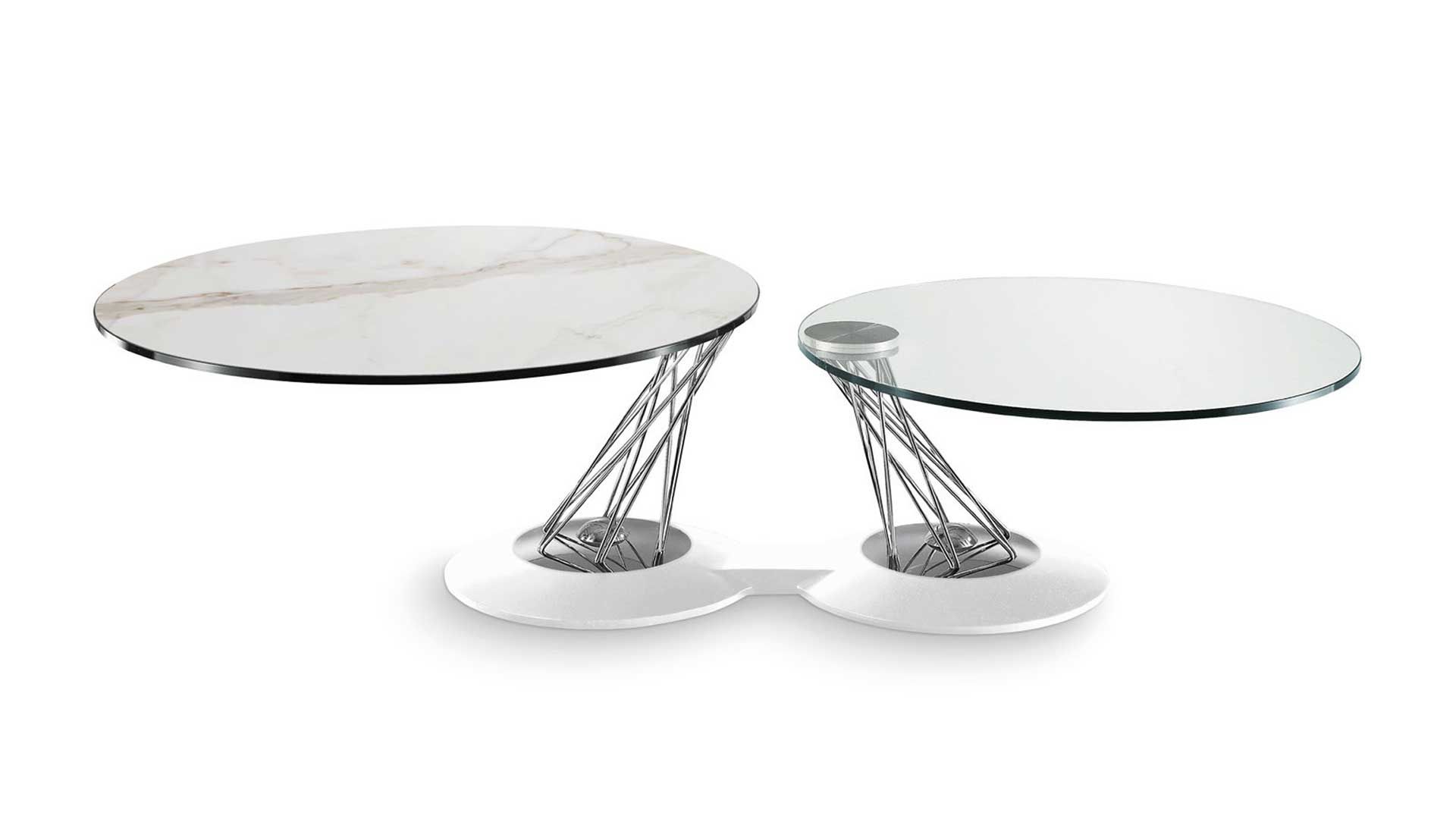 Elevate your living space with our versatile cocktail table, featuring revolving glass tops for added functionality and style. The sleek base, crafted from steel and coated with a premium synthetic painted finish, pairs seamlessly with galvanized steel supports for a modern and durable design.