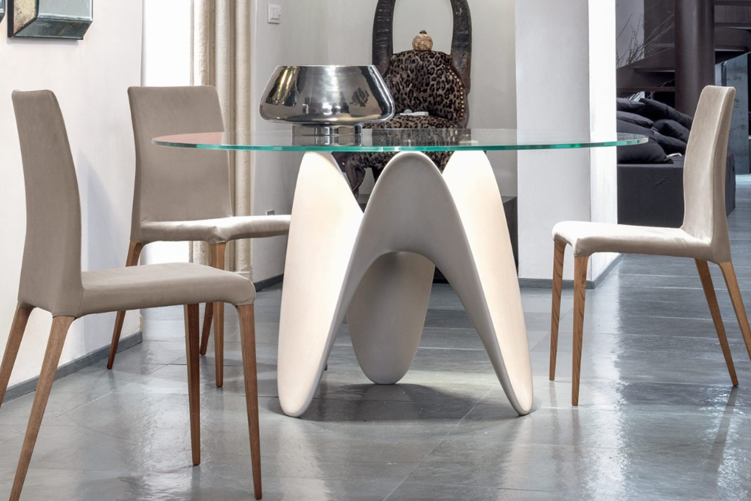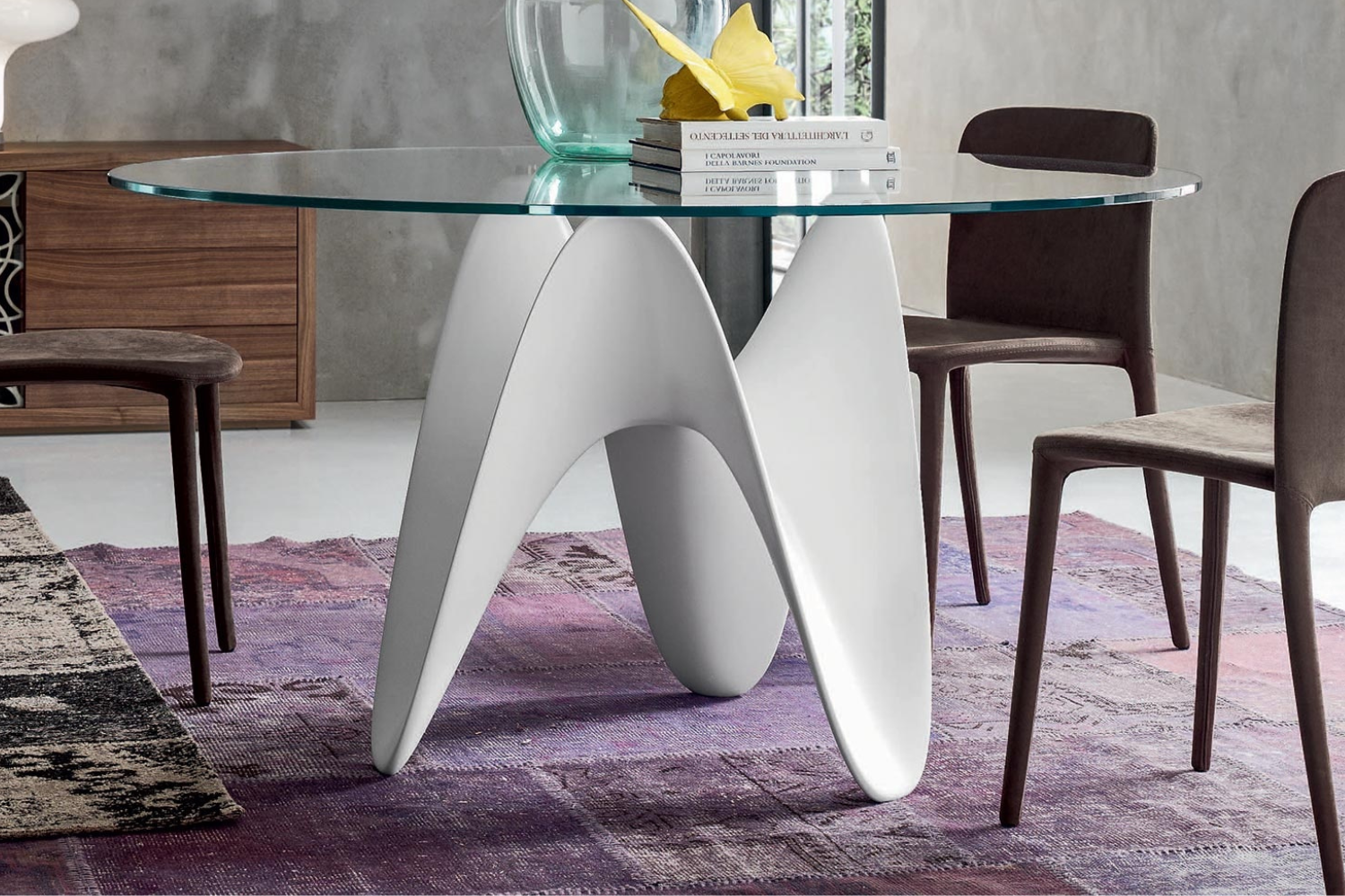 Discover the perfect blend of artistic expression and everyday functionality with the Frittata Dining Table. Designed to captivate, this table combines sculptural elegance with bold geometric playfulness, making it a striking centerpiece for any dining space. The harmonious mix of a glass top and a beautifully crafted wood base creates a seamless balance between sophistication and durability.