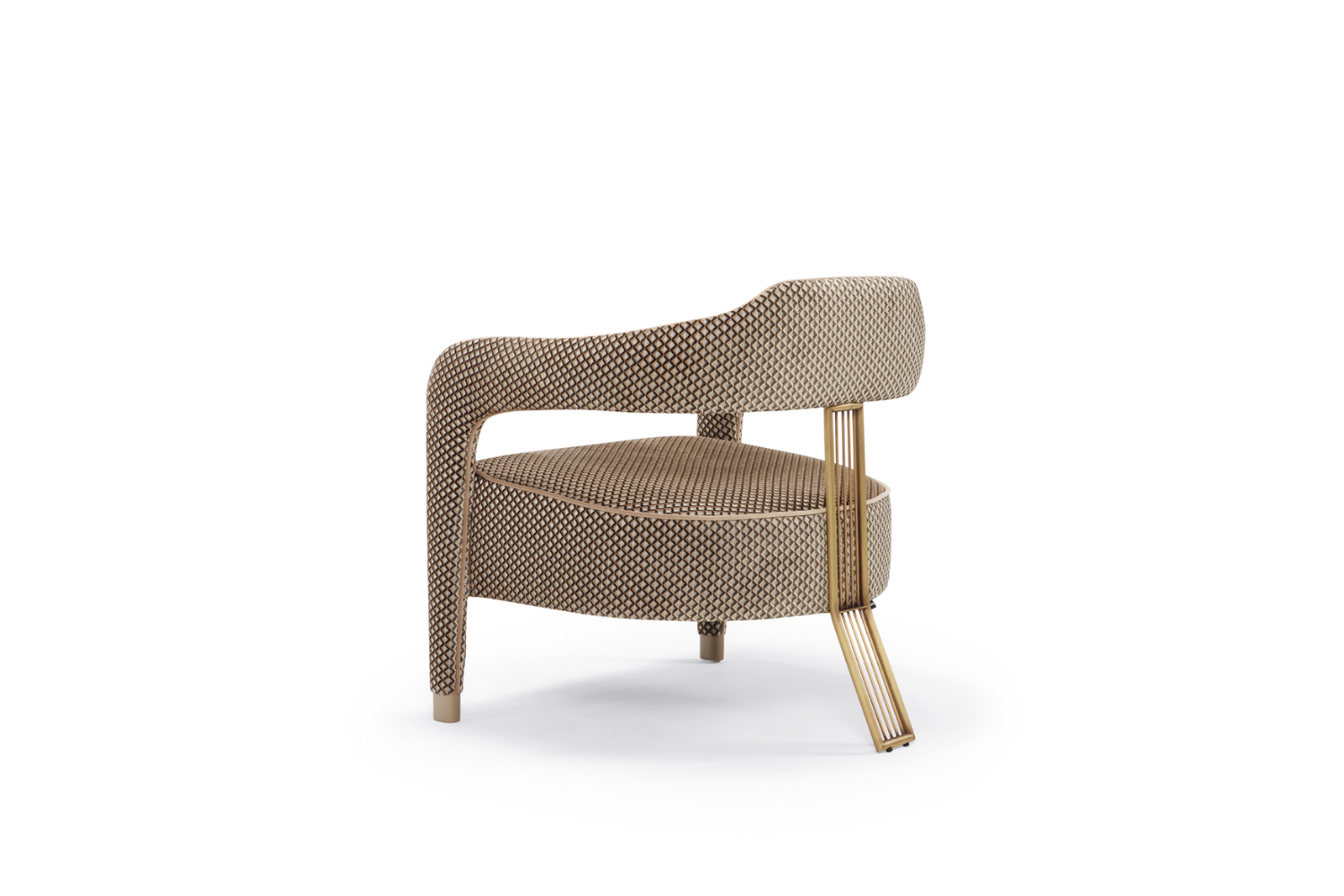 The IVIANA II armchair builds on the iconic design of the IVIANA II dining chair from the Casa Magna collection. Its striking style is defined by a metallic rear leg in brass or stainless steel, while the contrasting piping flows seamlessly from the front legs along the seat and back. Designed with a gently tilted seat, this armchair envelops you in exceptional comfort and refined elegance.