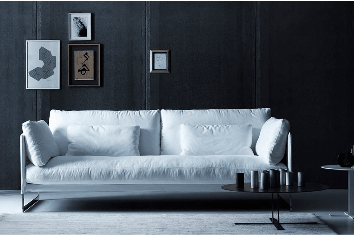 The Livingston Sofa boasts a surprising and delightful feature: a headrest that cleverly transforms into a comfortable backrest with a simple rotation. This "smart" design allows for ultimate customization of your comfort level. Livingston's unique charm doesn't stop there. Soft, informal seating rests upon a light steel base, creating a dynamic contrast between the plush cushions and the sleek foundation. This juxtaposition makes the sofa visually interesting and undeniably modern. But don't be fooled by its sleek lines comfort reigns supreme. The original, adjustable backrest and characteristic full-length seat cushions offer unparalleled relaxation and support. Additionally, the modular nature of the sofa allows for endless configurations, making it a perfect fit for any space and gathering. Livingston's versatility extends beyond its functionality. Fully removable covers add a layer of practicality, allowing for easy cleaning and the ability to refresh the look of your sofa as your style evolves.