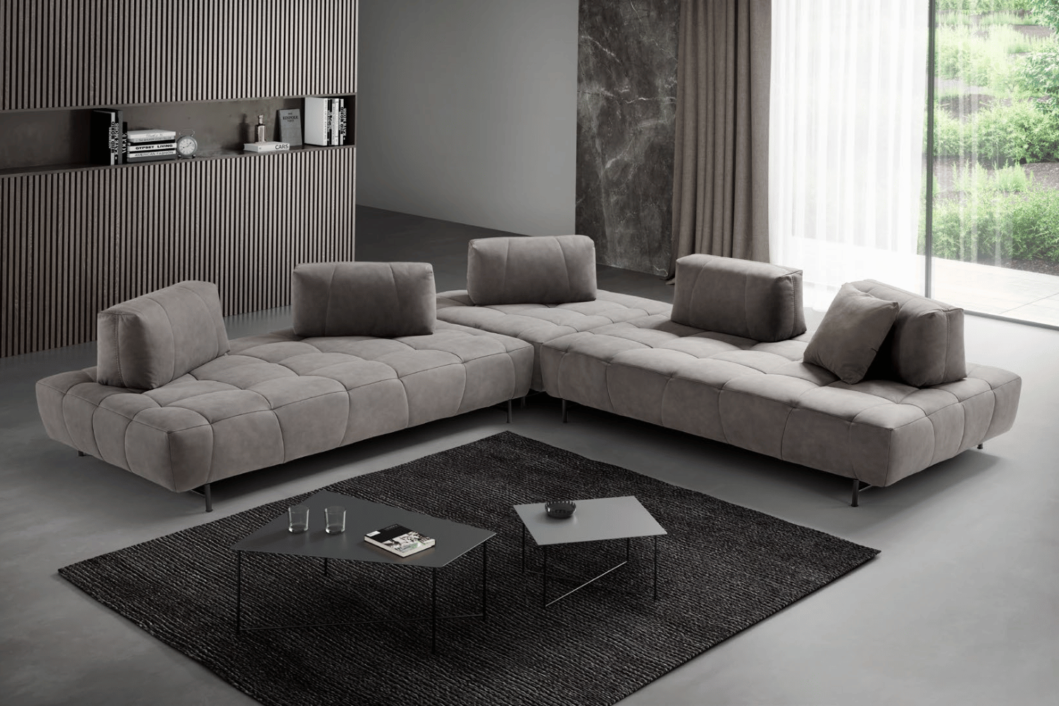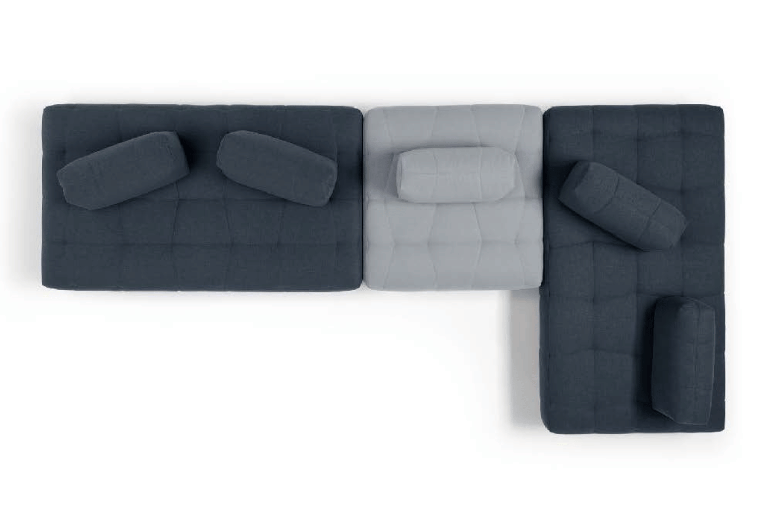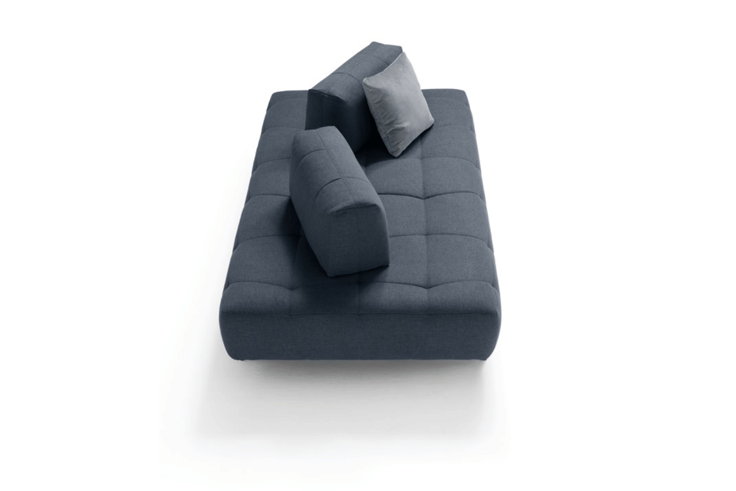 The base is the protagonist of the modern and innovative Magnifico project: a soft “sommier”, with a large quilting that stretches along the edge of the open base seating supported by metal feet. Availability both in leather or fabric, can be arranged in modular compositions of different shape and size, with scattered quilted backrest cushions.