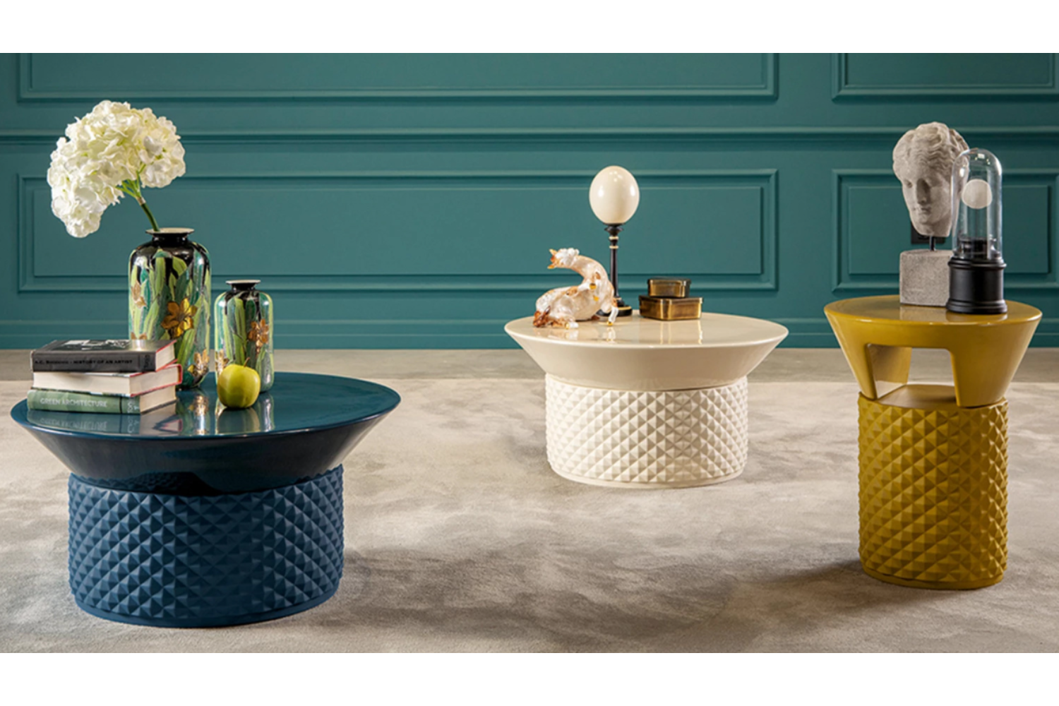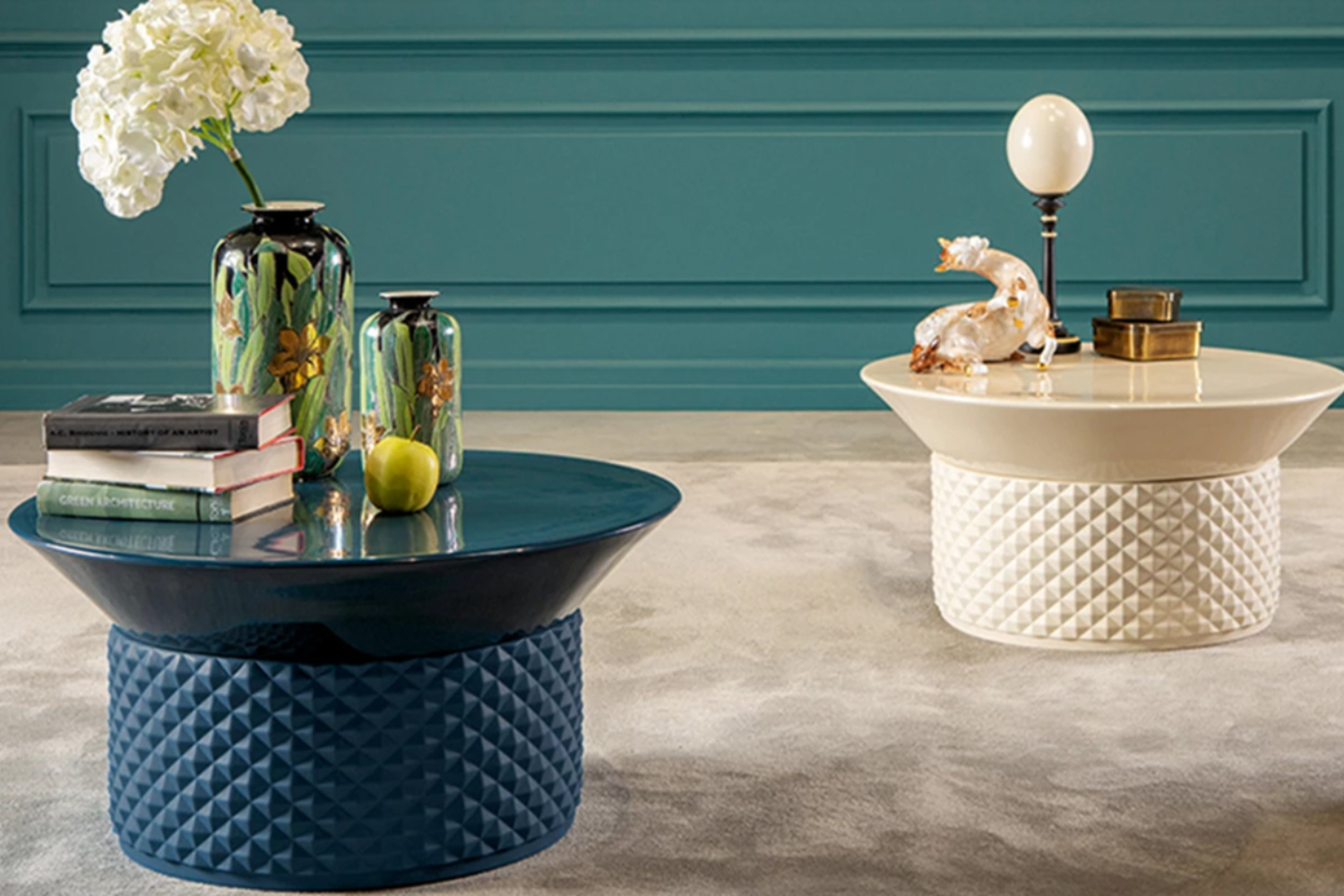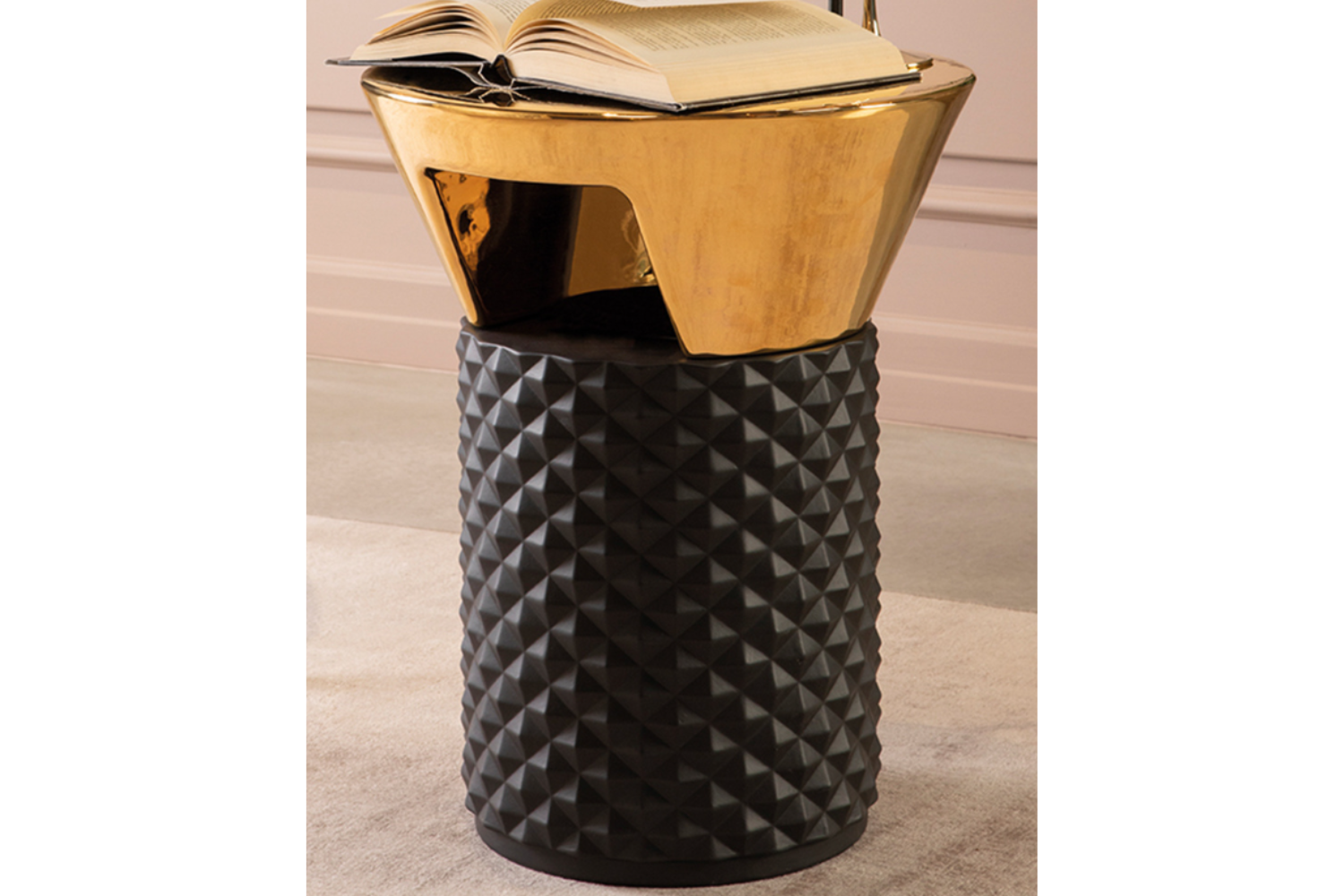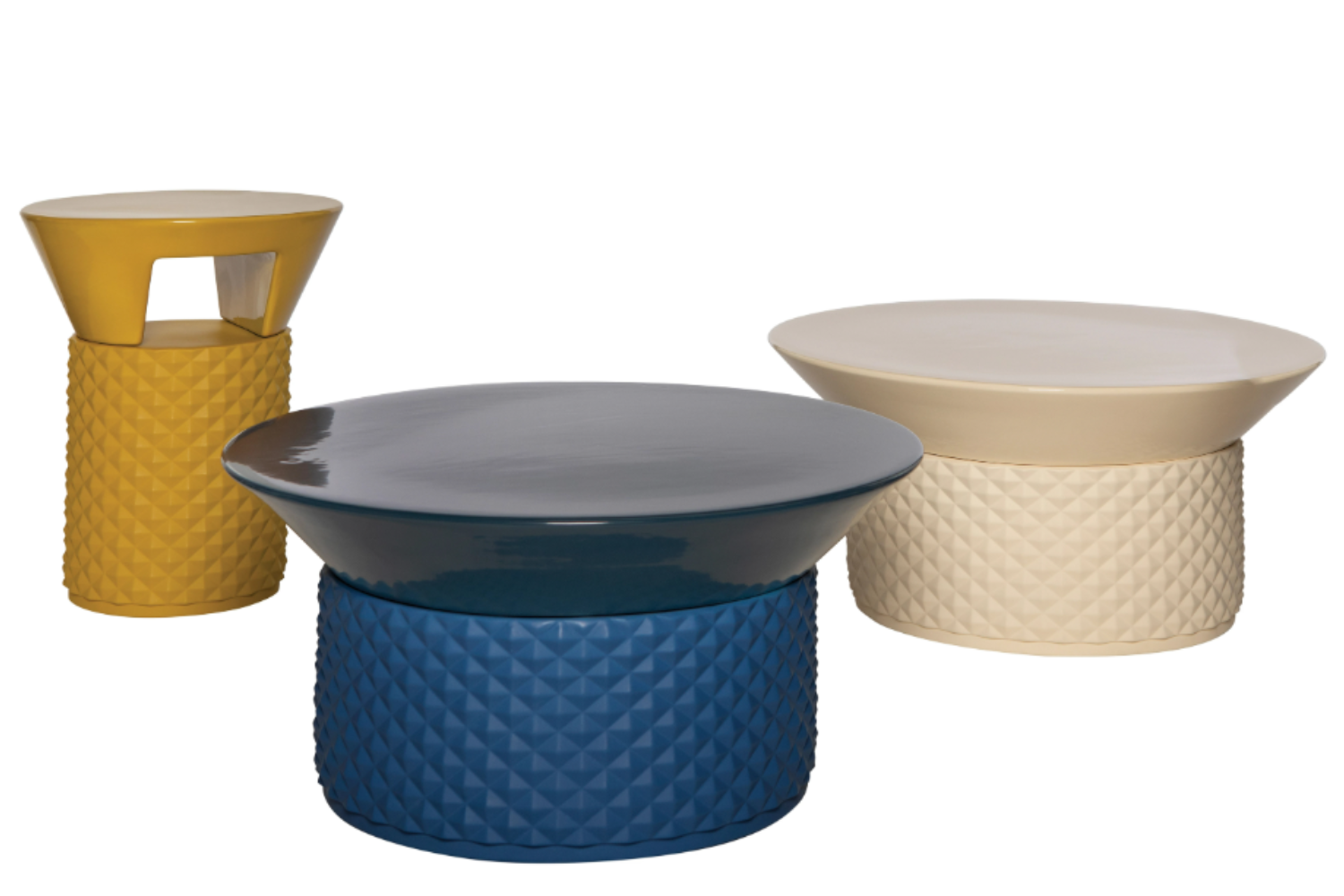 The PalmBay coffee table captures the essence of timeless elegance with its Art Deco-inspired design. Crafted in Italy, this piece boasts a ceramic construction with a matte-finished base and a glossy round top, delivering a striking contrast. The sculpted base features a 3D pyramid pattern, adding a jewel-like sophistication to any space. Offered in a variety of colors, the PalmBay coffee table seamlessly complements modern interiors and can be paired with its matching end table for a cohesive living room aesthetic.