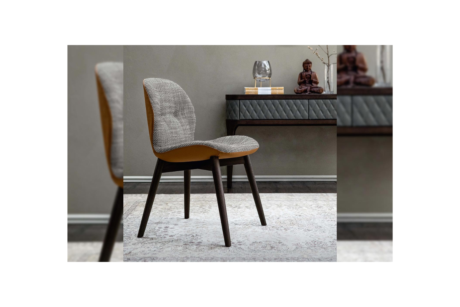 Gather around the table in both comfort and style with the sophisticated Sorentin Esprit Dining Chair by EuroHome. With striking contrasting finishes across the front, back, and legs, this chair adds a vibrant touch to your dining space. The slightly curved back and angled legs offer ergonomic support, promoting proper posture, while the soft upholstery ensures comfort throughout your meals. Elegant button-tufted details elevate the design, giving the chair a refined, timeless appeal.